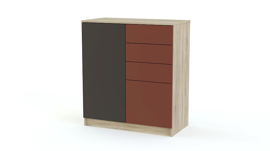 Высокий комод из популярной серии Шайн позволит не только организовать удобное хранение для постельного белья, одежды и документов, но и станет стильным акцентом в интерьере спальни или гостиной. Современная модель оснащена четырьмя выдвижными ящиками и просторным распашным отделением. Фасады выполнены в модном матовом оттенке насыщенных контрастных оттенков, дверцы оборудованы эргономичной системой открывания. Комод Шайн 7 BMS – прекрасный выбор для ценителей минимализма и функциональности.