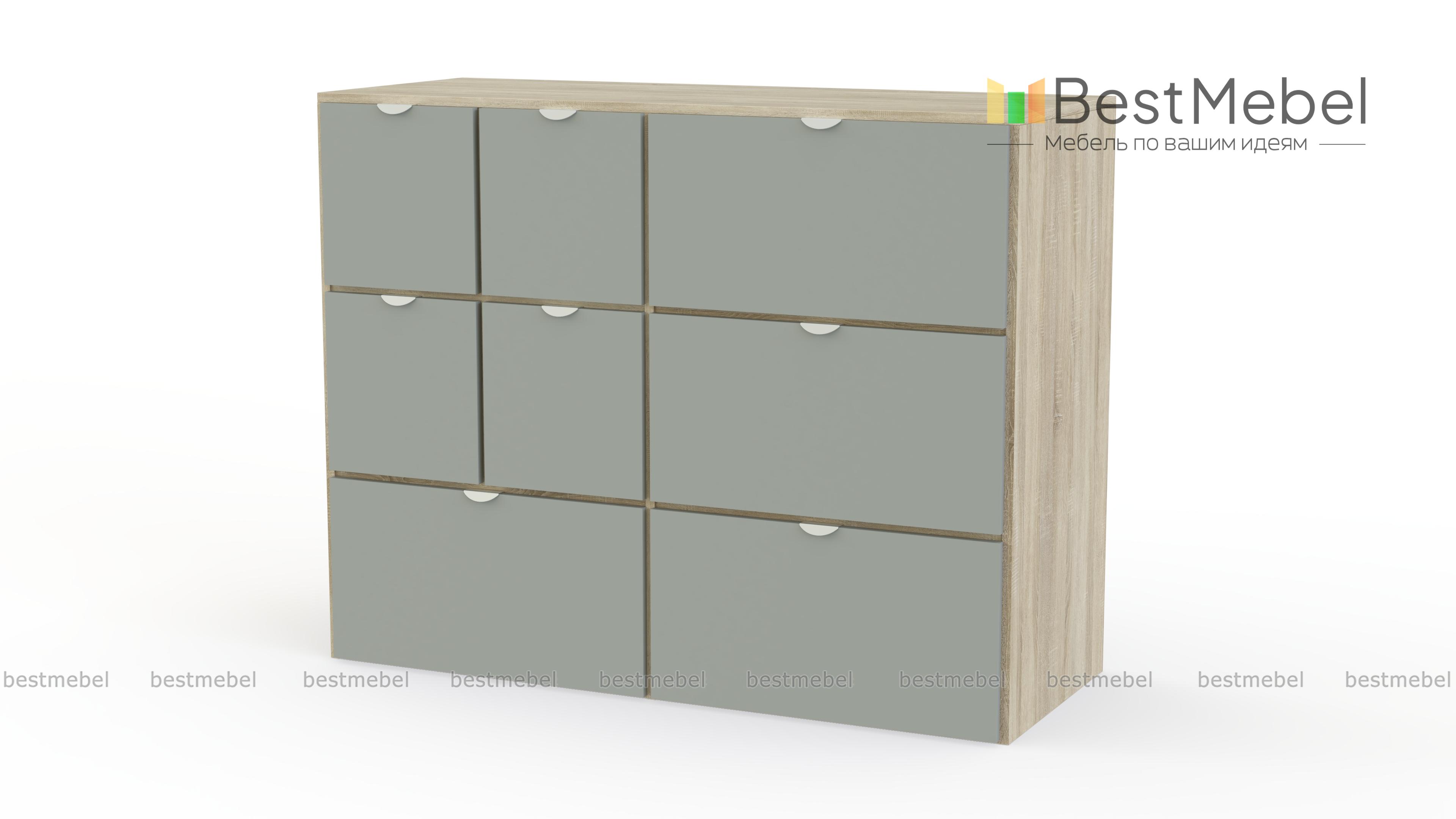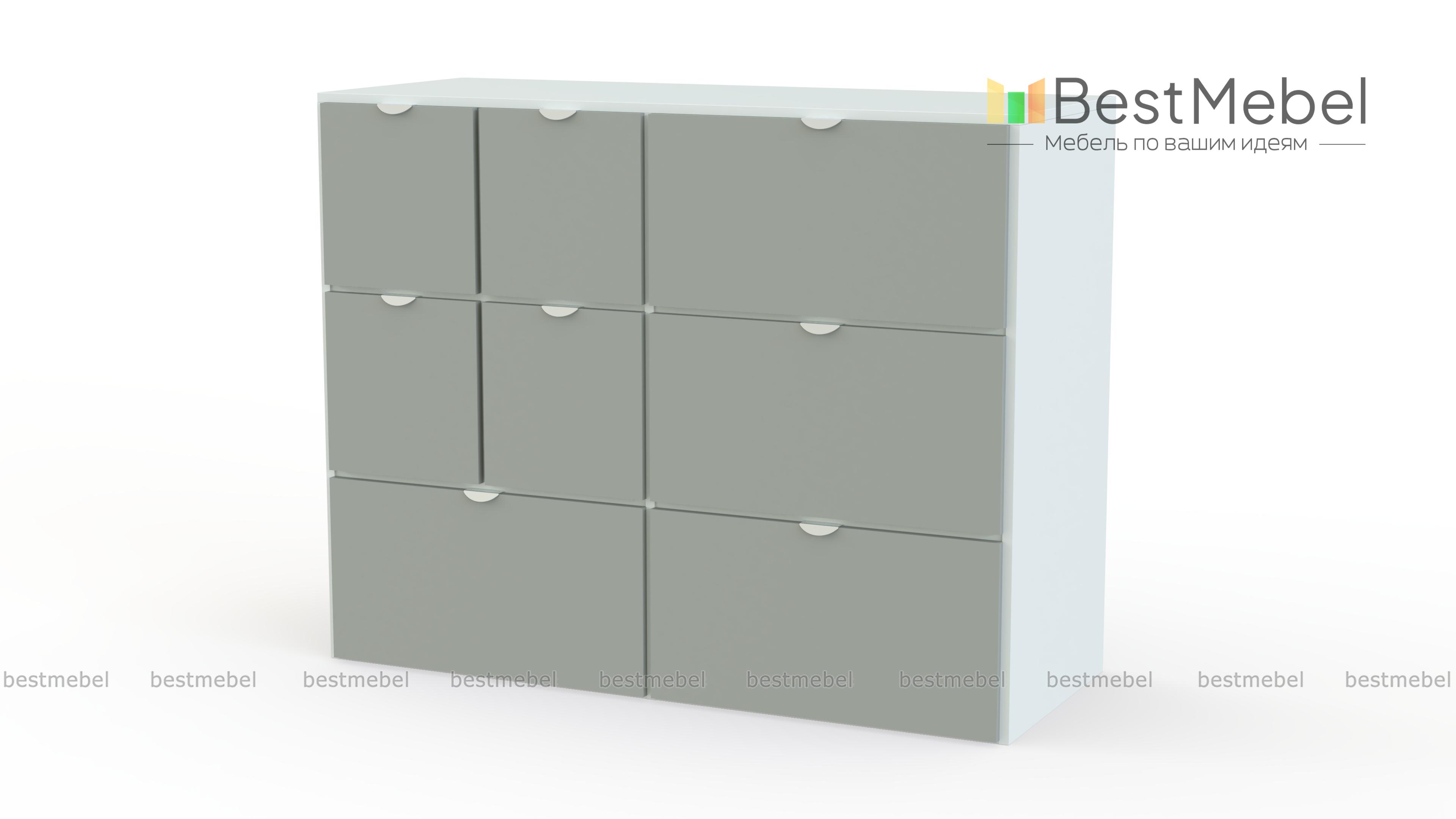 Комод Вистхус Visthus 3 – для тех, кто привык к рациональной организации пространства и порядку в вещах. Продуманная система хранения включает в себя четыре больших выдвижных ящика и четыре малых, в которых найдется место для одежды, аксессуаров, постельного белья и множества мелочей. Светлые фасады, разделенные контрастными вставками, оснащены полукруглыми торцевыми ручками. Купить комод Вистхус Visthus 3 для меблировки спальни, гостиной или прихожей вы сможете в нашем интернет-магазине. Выбирайте мебель в стиле IKEA (ИКЕА) от производителя BestMebelShop!