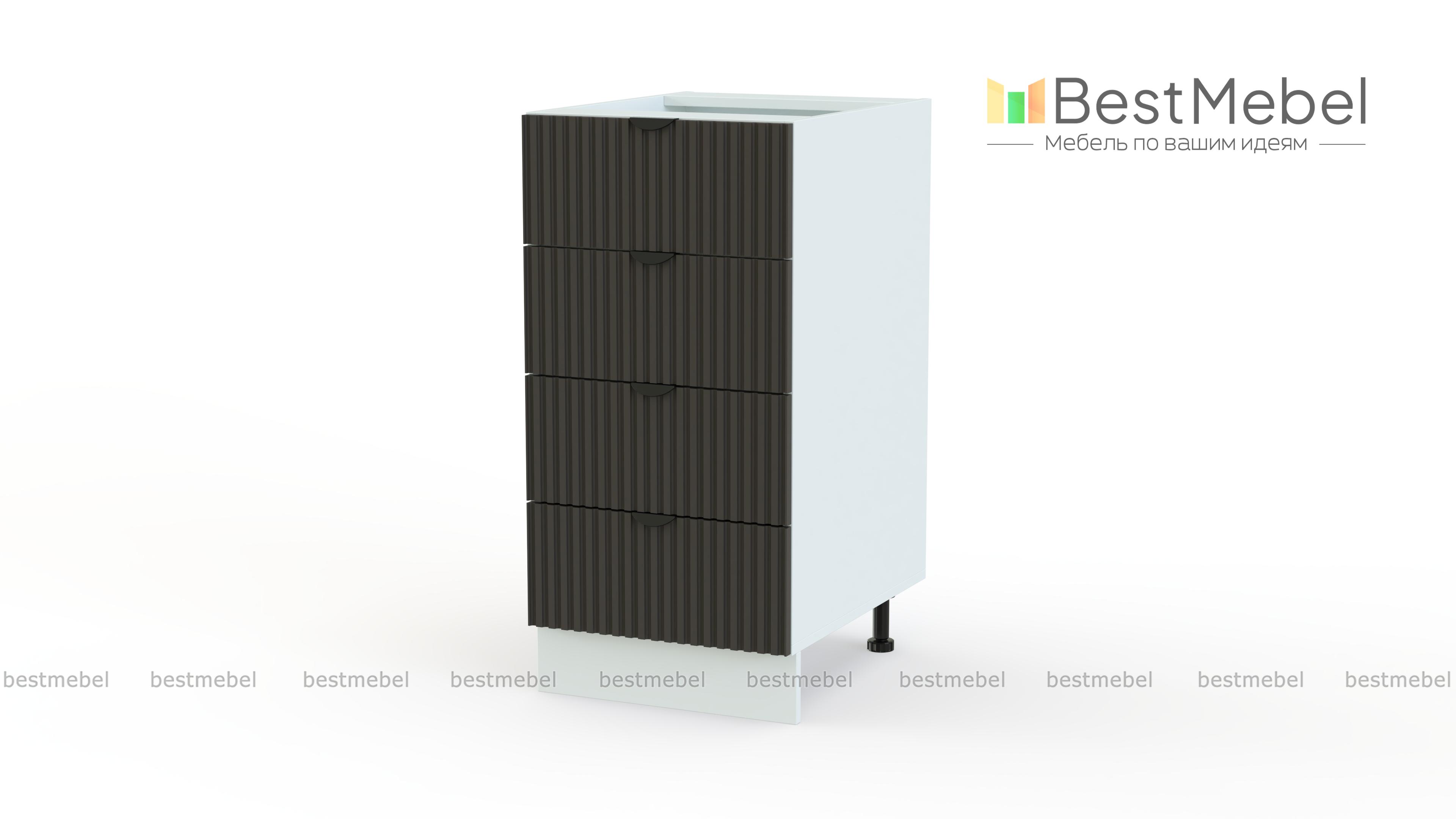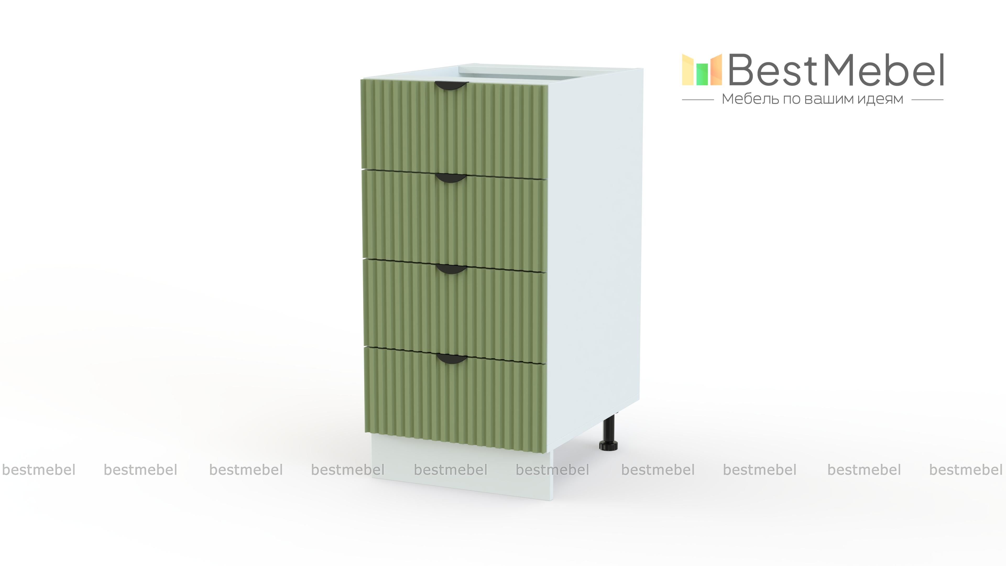 Шкаф нижний с 4-мя ящиками Альберт BMS просто незаменим для хранения кухонных мелочей. Благодаря четырем ящикам с легким выдвижением ваши столовые приборы, салфетки, полотенца и другие расходники будут всегда под рукой. Светлый рельефный фасад с полукруглыми ручками контрастного цвета — всегда актуальная современная классика. Купить шкаф нижний с 4-мя ящиками Альберт BMS вы сможете на сайте нашего интернет-магазина с изготовлением по индивидуальным размерам.