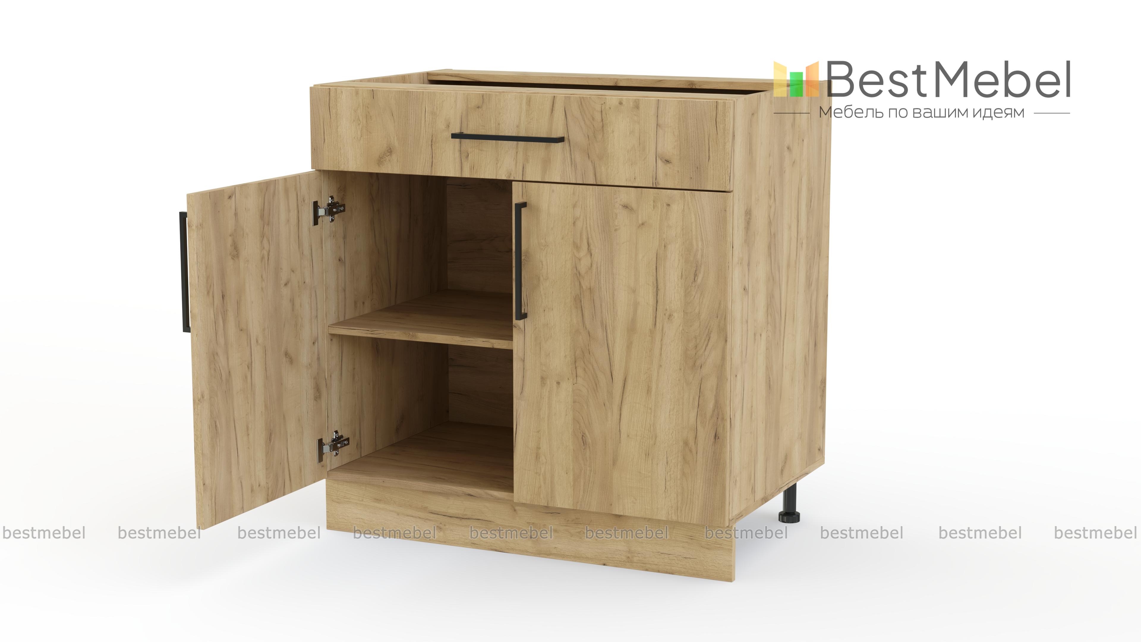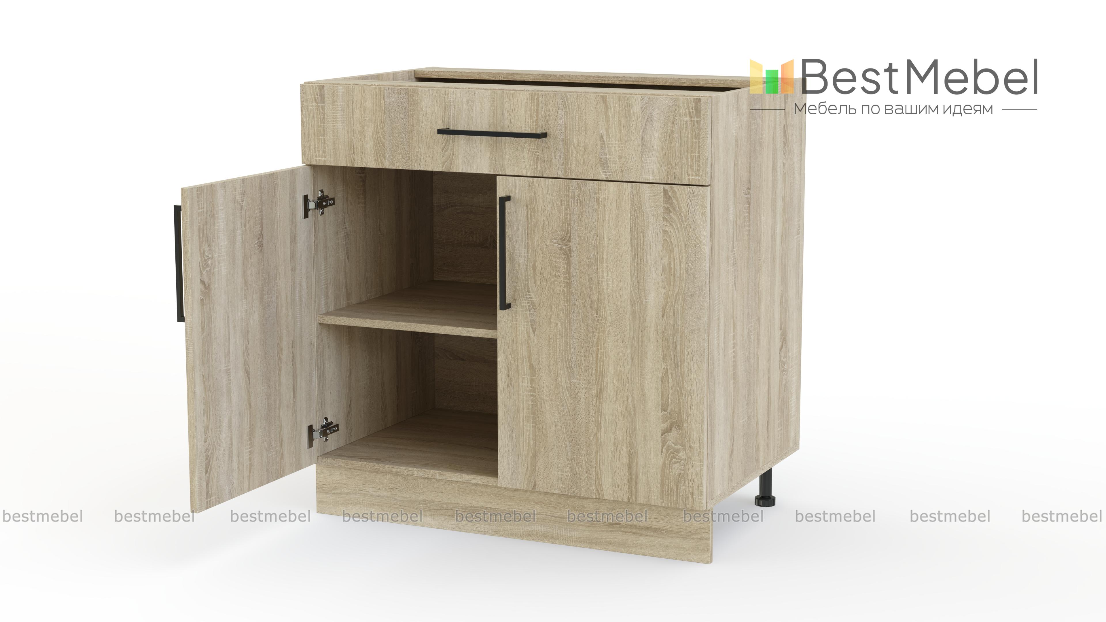 Шкаф нижний с ящиком Лайт BMS поможет разместить под рукой столовые приборы и кухонные мелочи, а для посуды и продуктов предусмотрено распашное отделение с полкой. Выполненный в нейтральном оттенке из прочной ламинированной плиты, шкаф надежен в эксплуатации и легко вписывается в современный интерьер. На фасады выдвижного ящика и двух дверей установлены стильные накладные скобы. Купить шкаф нижний с ящиком Лайт BMS вы сможете в нашем интернет-магазине с учетом необходимых размеров.