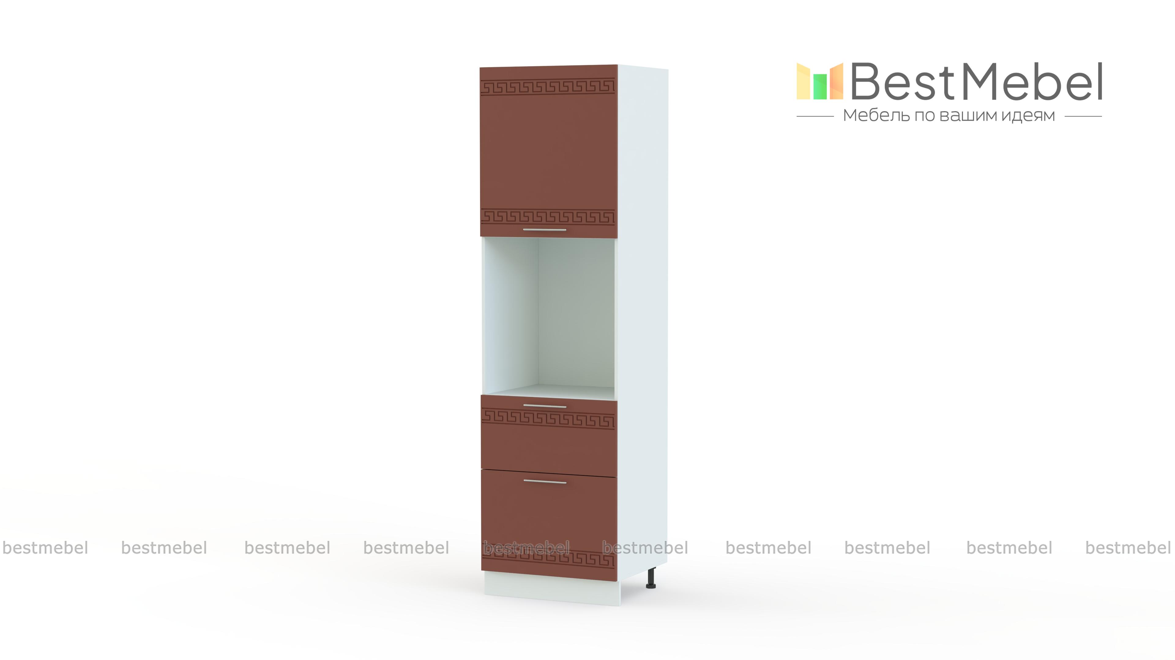 Шкаф-пенал с нишей 2 ящика Греция BMS дополнит кухонный гарнитур удобной системой хранения и поможет разместить бытовую технику. Шкаф выполнен в характерных для всей серии светлых тонах и декорирован этническим орнаментом и изящными ручками-скобами. В нижней части пенала располагаются два выдвижных ящика для мелочей, в верхней – распашное отделение, а центр занимает просторная ниша. Купить шкаф-пенал с нишей 2 ящика Греция BMS и создать комфортный интерьер в современном стиле вам поможет наш интернет-магазин.