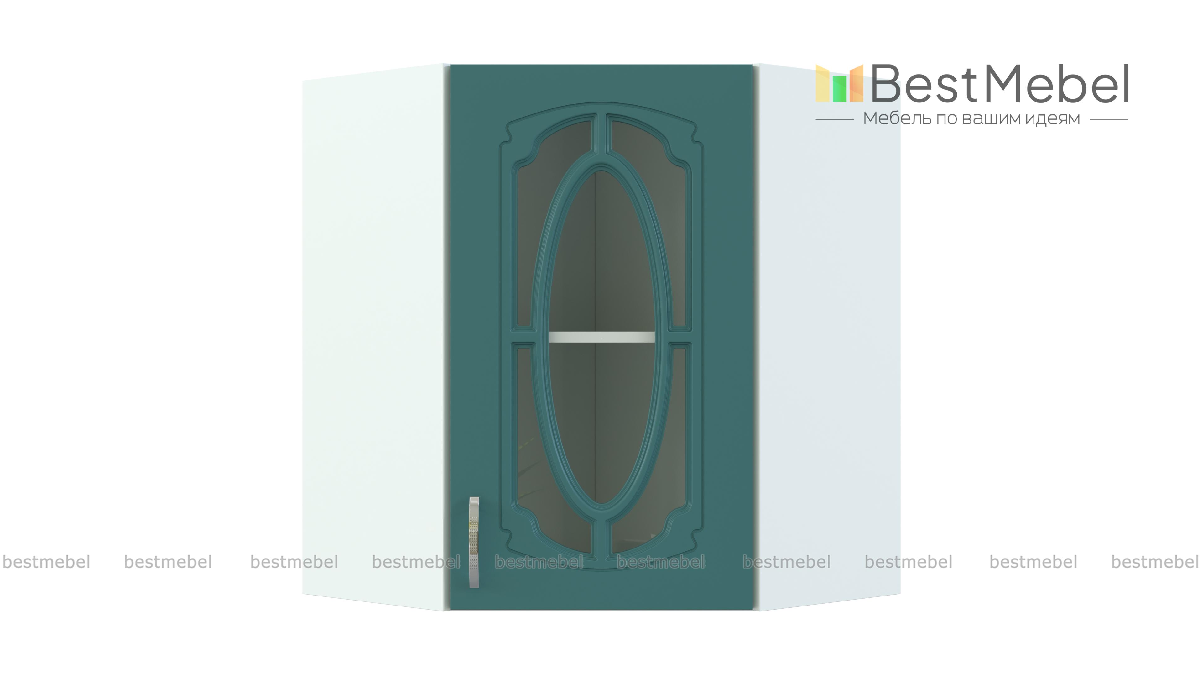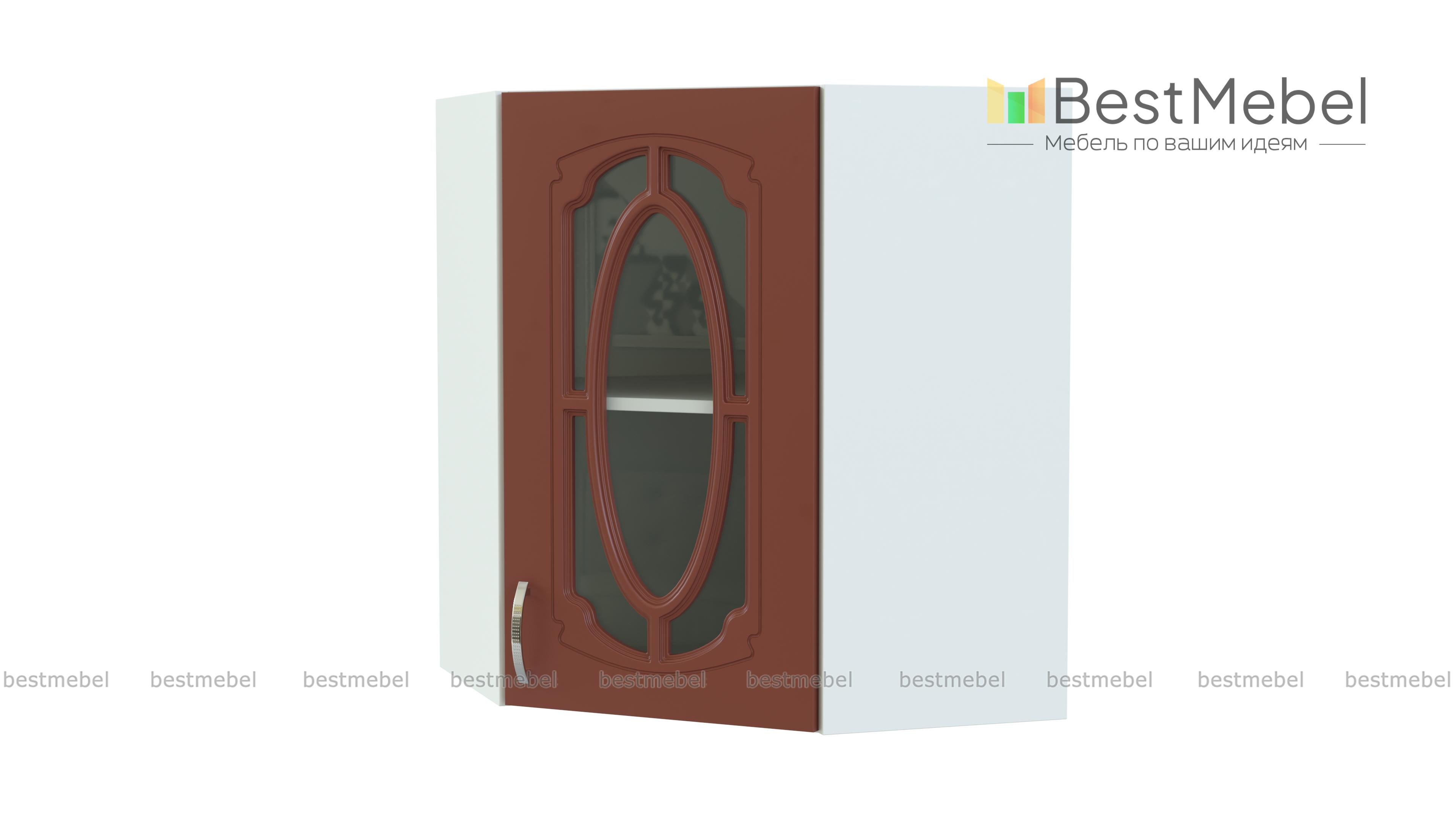 Шкаф верхний угловой остекленный Настя BMS – многофункциональная модель, которая совмещает функции стыковочного элемента и витрины. Шкаф позволяет присоединять модули любой конструкции и отличается вместительностью при компактных размерах. Внутреннее отделение с полкой позволит выгодно разместить посуду, предметы декора, хрупкие вещи, а эффектный декор фасада станет украшением домашнего интерьера. Купить шкаф верхний угловой остекленный Настя BMS вы сможете по лучшей цене в нашем интернет-магазине.