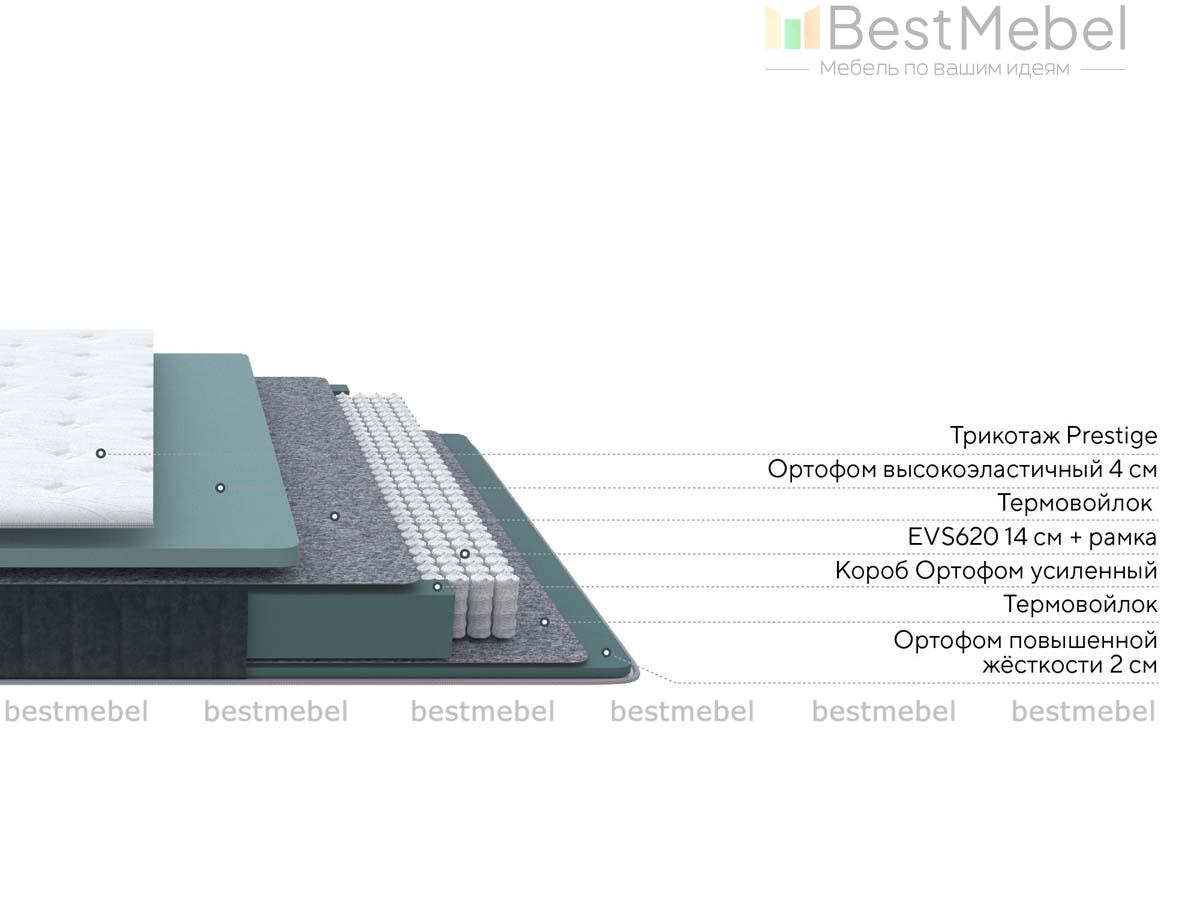 Матрас Prestige Soft Night — это мягкая односторонняя модель для ежедневного сна. Основание представляет собой блок независимых пружин EVS620 с выраженными ортопедическими свойствами, лежащий на слое жесткой пены, а для верхнего наполнителя выбран более мягкий и эластичный Ортофом толщиной 4 см. Усиленный короб из пены отлично сохраняет форму матрас. Объемный стеганый чехол изготовлен из трикотажа Prestige и износостойкого микровелюра оттенка Night в качестве бурлета. Купить матрас Prestige Soft Night приглашаем на сайт нашего интернет-магазина.