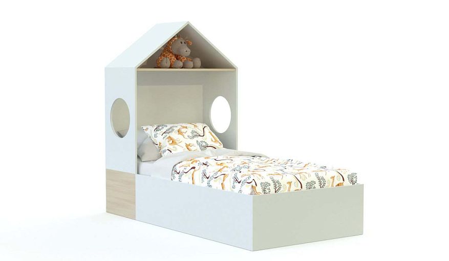Кровать-домик Манхеттен 11 BMS отличается лаконичным дизайном и необычной формой, которая обязательно понравится детям. Просторное спальное место на высоком подиумном основании дополнено изголовьем в виде домика с открытой полочкой для мелочей под крышей и круглыми «окошками»-вырезами в боковинах. В оформлении кровати скомбинированы белый цвет и древесные тона. Купить кровать-домик Манхеттен 11 BMS приглашаем в наш интернет-магазин, подобрав оптимальные размеры.