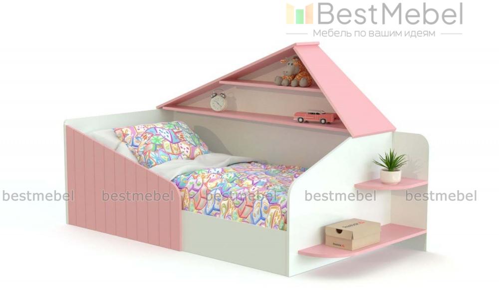 Кровать-домик Монти 5.2 BMS выполнена в контрастной древесной гамме и поможет оборудовать уютную спальню для девочки. Просторное спальное место дополнено защитным бортиком с вертикальной фрезеровкой, имитирующей заборчик, а задняя стенка кровати в форме крыши оборудована открытыми полками для книг и игрушек. На боковине закреплены две безопасно скругленные полочки для мелочей. Купить кровать-домик Монти 5.2 BMS с возможностью выбора цвета приглашаем в наш интернет-магазин.