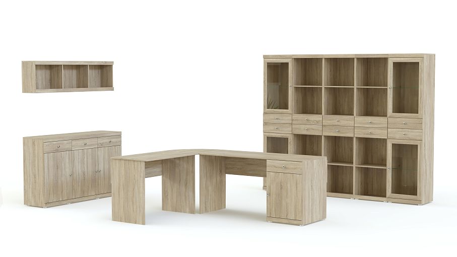 Офисный комплект Meris 1 BMS отличается высоким качеством исполнения и функциональностью. Простые строгие линии и благородные древесные оттенки позволят создать комфортную атмосферу традиционного респектабельного кабинета. Модульная система комплектуется двумя письменными столами с угловым соединительным элементом, витриной, комбинированным стеллажом, тумбой и навесной полкой. Купить офисный комплект Meris 1 BMS, подобрав оптимальное сочетание для вашего интерьера, вы сможете в нашем интернет-магазине.