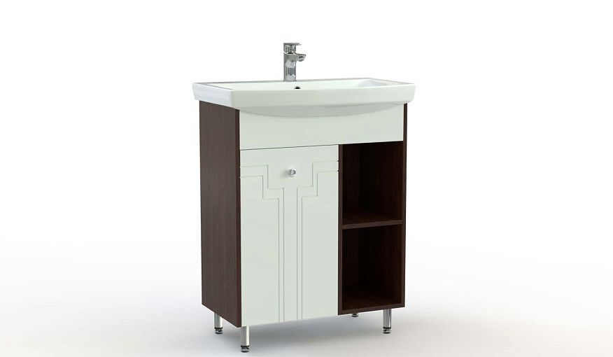 Тумба в ванную Файн 3 BMS – это элегантная современная классика удобных средних габаритов. Пристенная тумба поможет эстетично вписать в интерьер раковину, скрыть коммуникации и разместить гигиенические принадлежности и хозяйственные мелочи в распашном отделении и открытой секции с полкой. Корпус в темном цвете дополняет фрезерованный фасад, выполненный из влагостойкого материала. Купить тумбу в ванную Файн 3 BMS приглашаем на сайт нашего интернет-магазина.