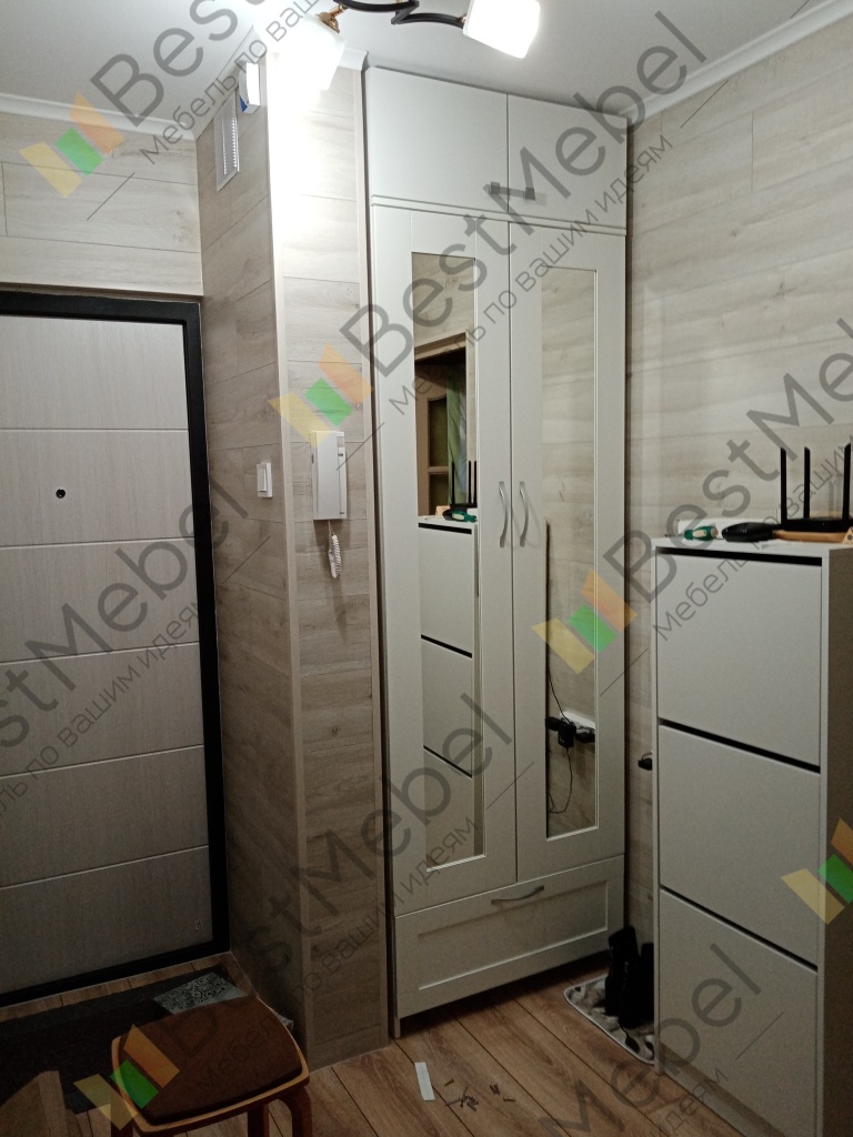Заказ 00000937340 Эта замечательная антресоль завершила входную группу в прихожей маленькой студии. Очень бюджетно, быстро и качественно!