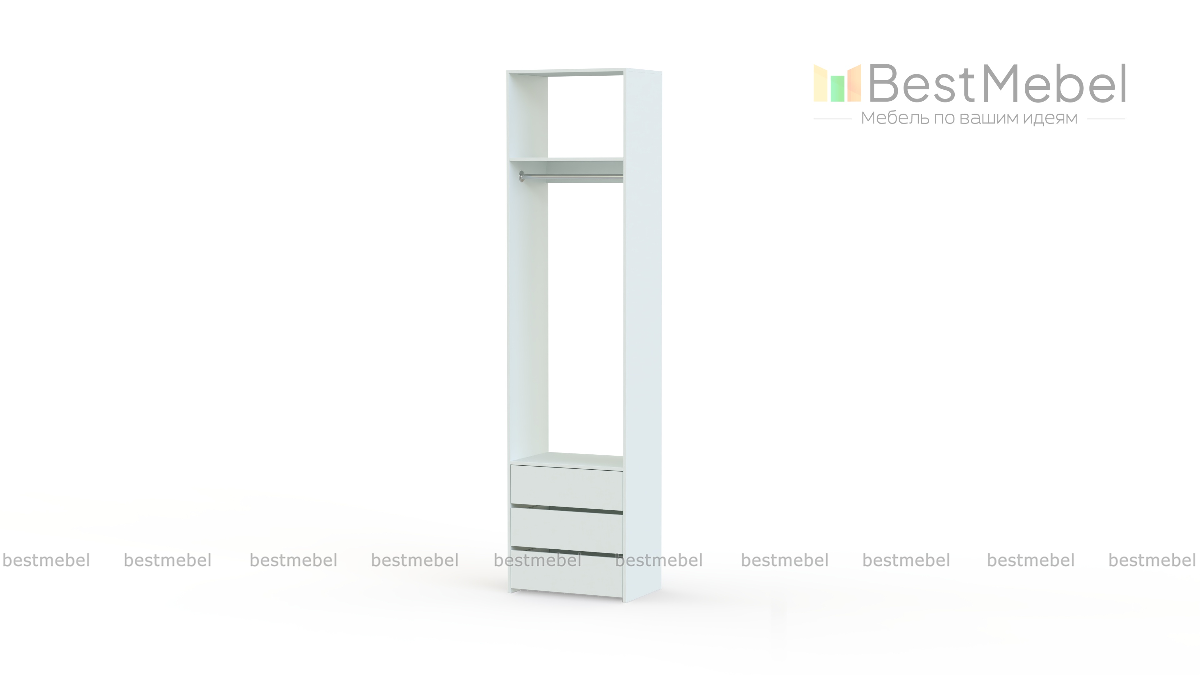 Стеллаж для одежды Мирта 33 BMS решает проблему хранения в маленьких прихожих и гардеробных. Компактная односекционная модель в светлом оттенке эстетично выглядит и не загромождает пространство. Для размещения в удобном доступе одежды, обуви и сезонных аксессуаров узкий стеллаж оборудован полкой, штангой и тремя выдвижными ящиками снизу.