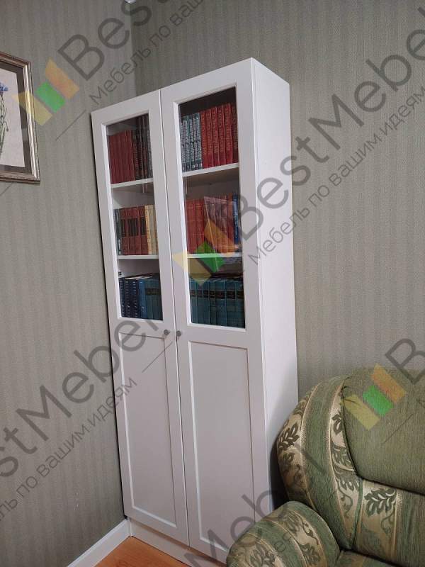 Шкаф в выбранном цвете смотрится шикарно. Из-за того, что книги очень высокие, пришлось менять высоту полок (что-то заранее сделали, что-то на месте). Понравилось, что можно менять конструкцию и даже что-то вне указанного (та же высота полок).