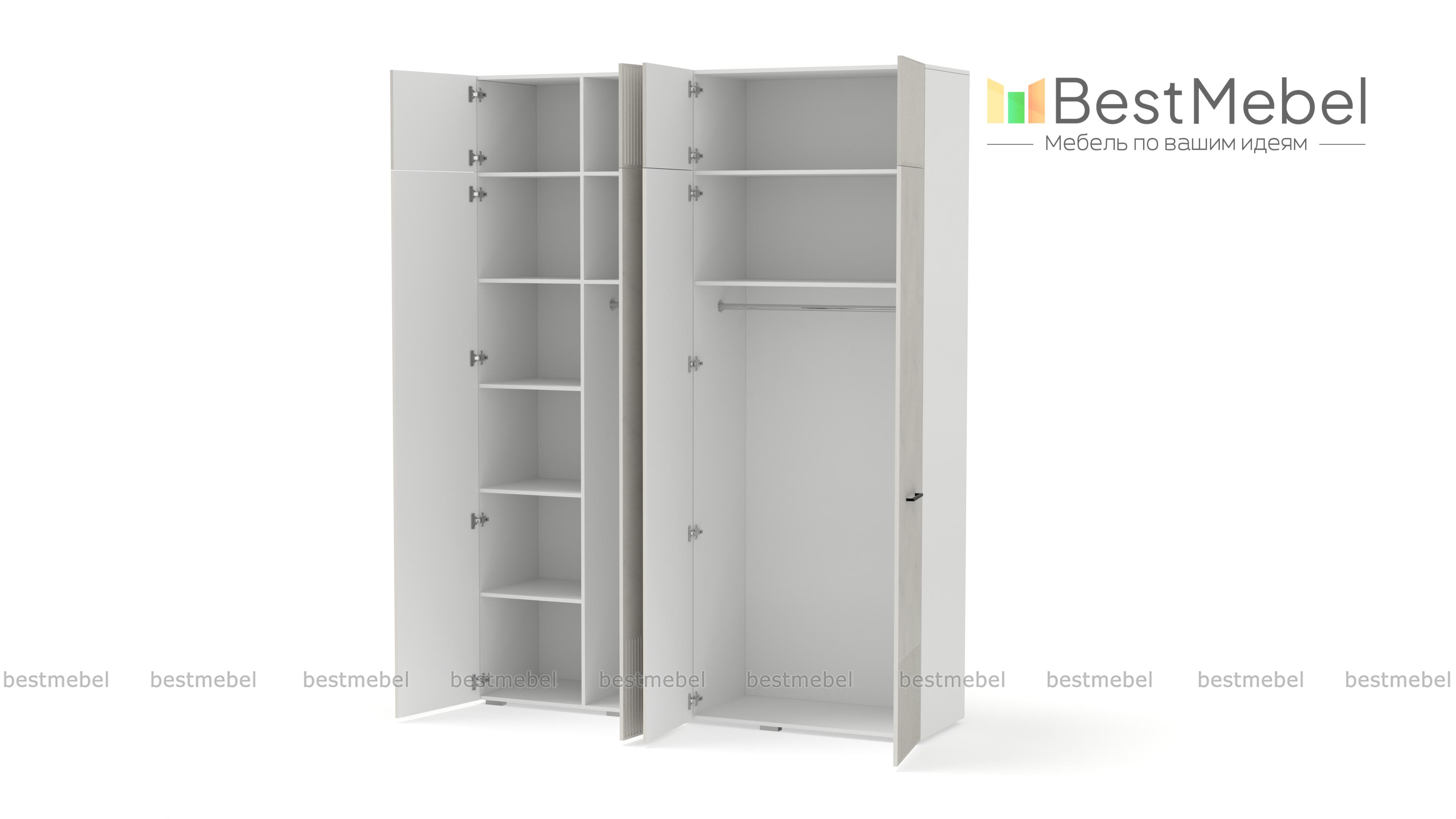 Шкаф распашной Декарт 10 BMS предоставляет еще больше места для хранения ваших вещей благодаря антресоли. В правой части высокого шкафа есть штанга и полка, а в левой — штанга и дополнительный ряд полок для сложенной одежды и текстиля. Гладкий светлый фасад с рифленым декором укомплектован стильными поперечными ручками контрастного цвета. Купить шкаф распашной Декарт 10 BMS в размере и оттенках, которые вам подходят, можно по доступной цене на сайте нашего интернет-магазина.