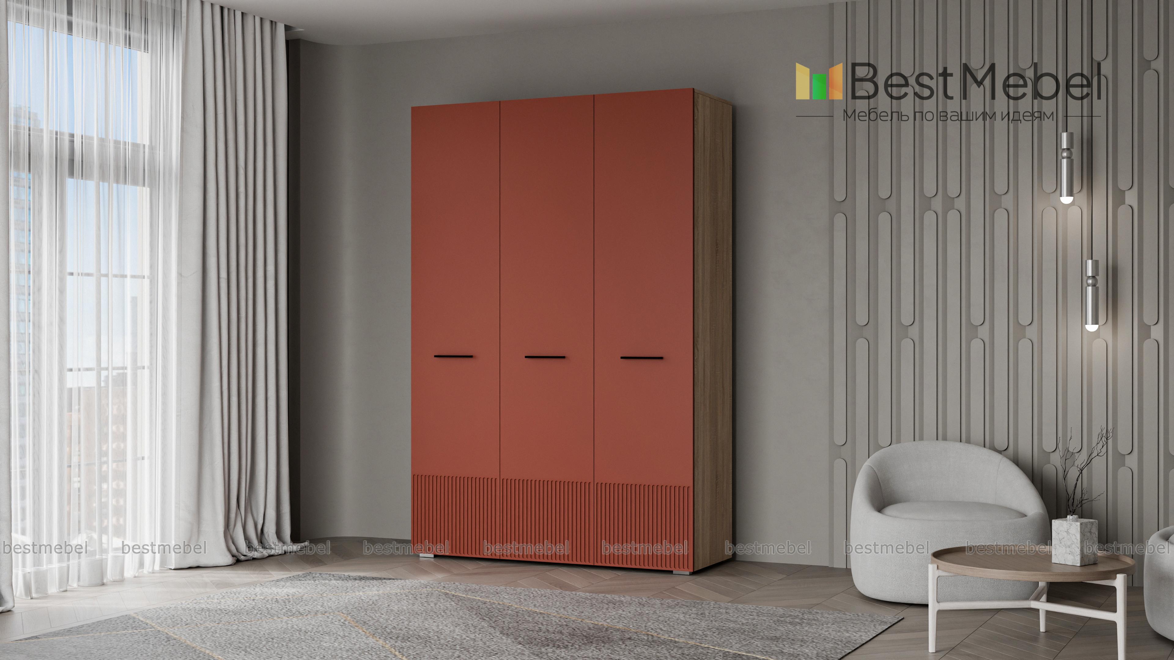 Шкаф распашной Декарт 3 BMS сохранит порядок в спальне, детской комнате или входной зоне. За двумя дверцами справа скрыта штанга для одежды, а однодверное отделение слева оборудовано полками. Элегантный фасад с рельефом и оригинальными ручками-скобами хорошо сочетается с разными интерьерами, помогая создать гармоничную обстановку. Купить шкаф распашной Декарт 3 BMS вы сможете в нашем интернет-магазине, самостоятельно подобрав размеры, цвет и наполнение.