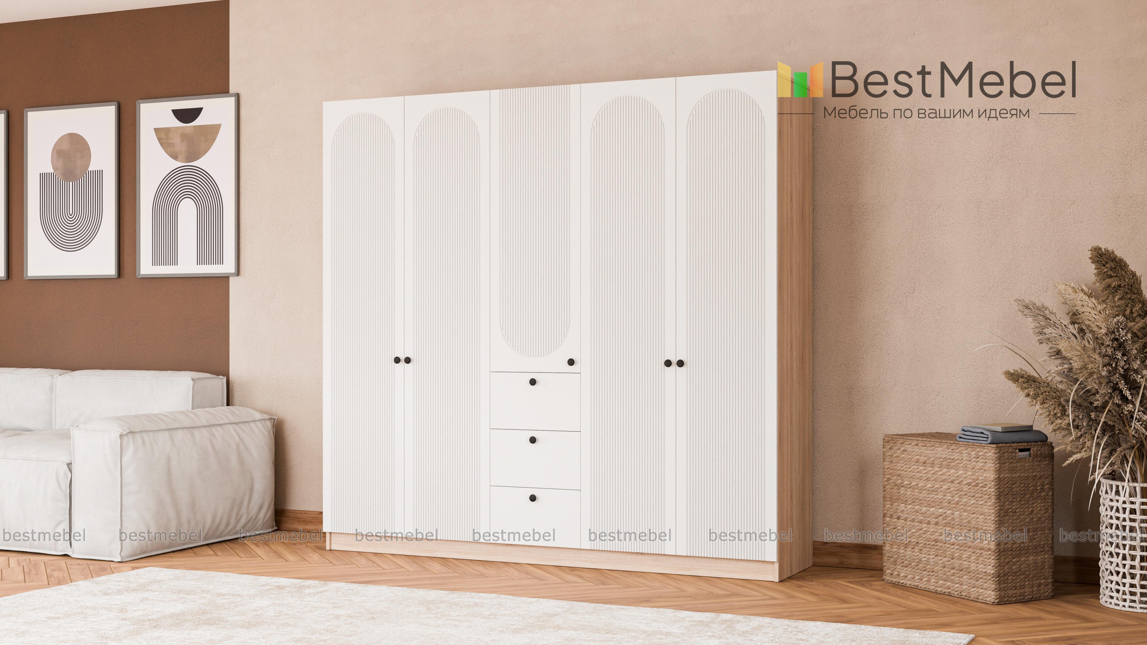 Шкаф распашной Рене 30 BMS поможет вам организовать хранение в спальне, просторной прихожей или детской. Двухдверные платяные отделения разделены комбинированной секцией с тремя ящиками — для белья и мелкого трикотажа. Оригинальный рельеф на дверцах и трендовые оттенки корпуса и фасада создают выразительный дизайн в современной стилистике. Купить шкаф распашной Рене 30 BMS приглашаем в наш интернет-магазин в необходимом размере и любых оттенках из каталога.