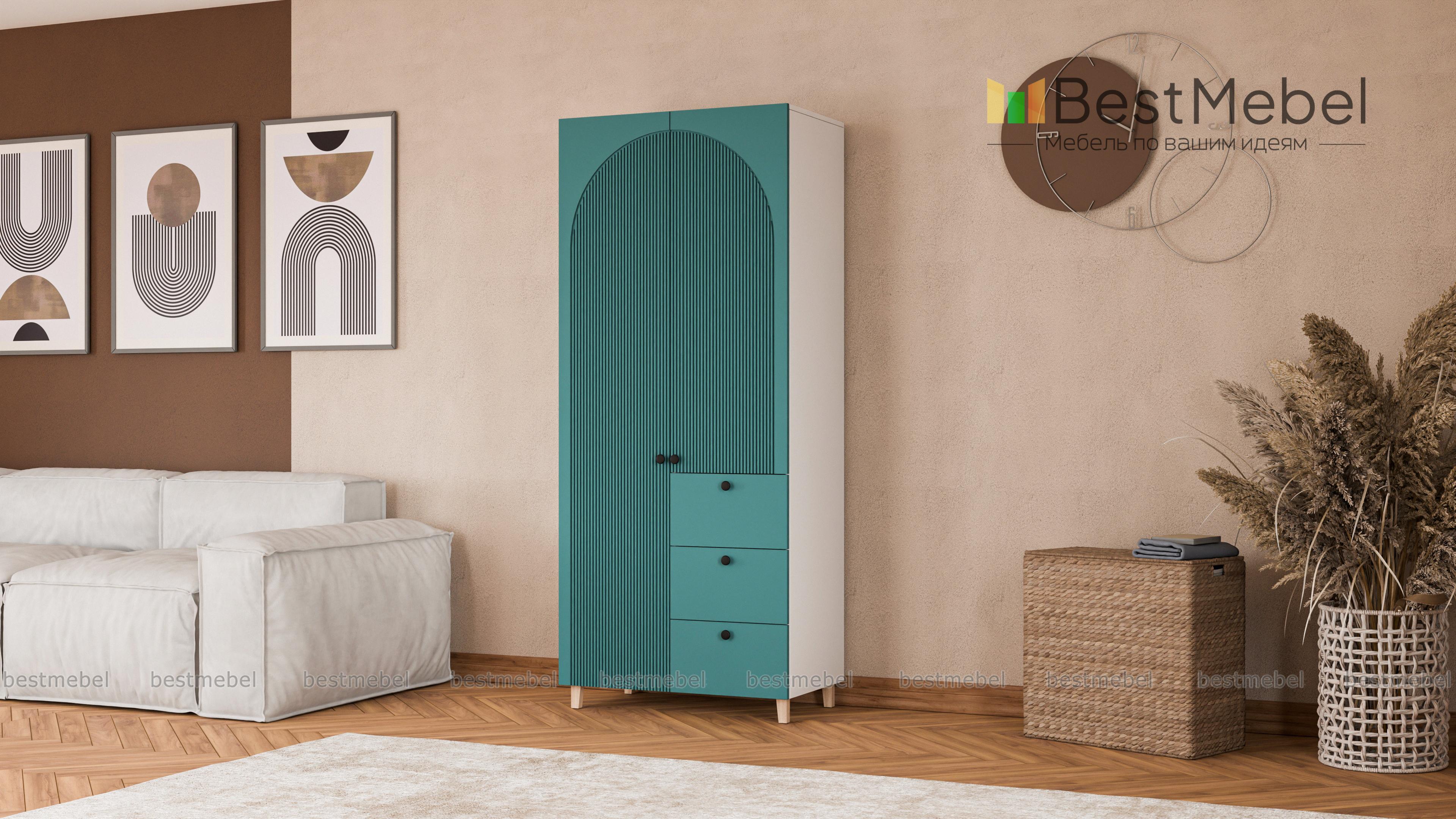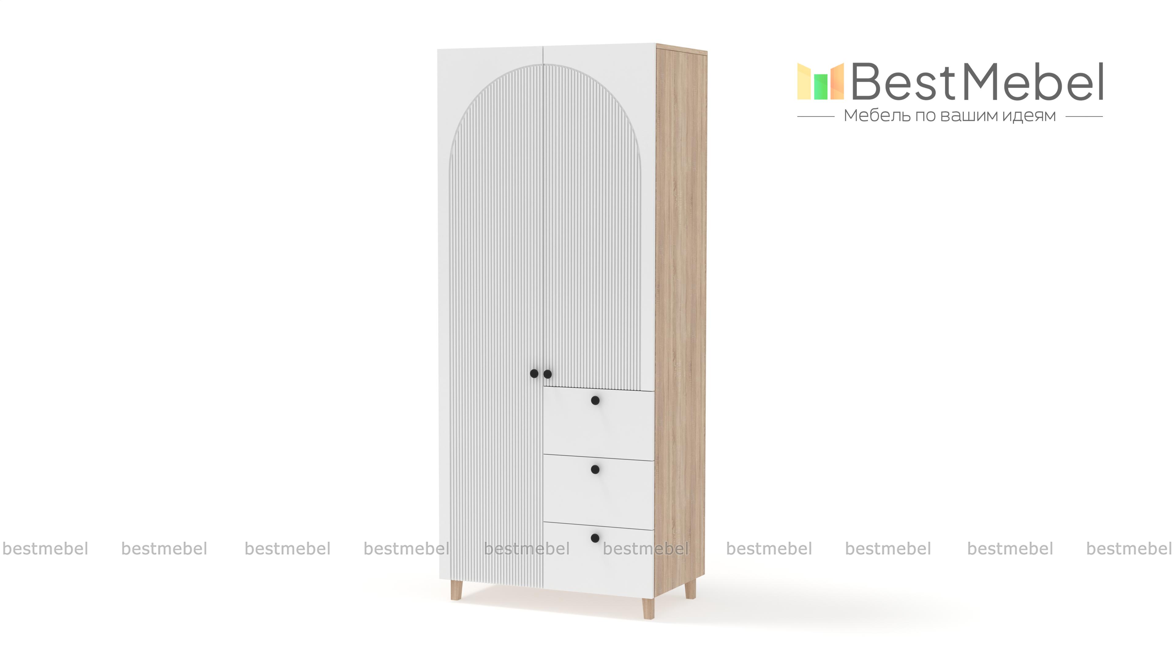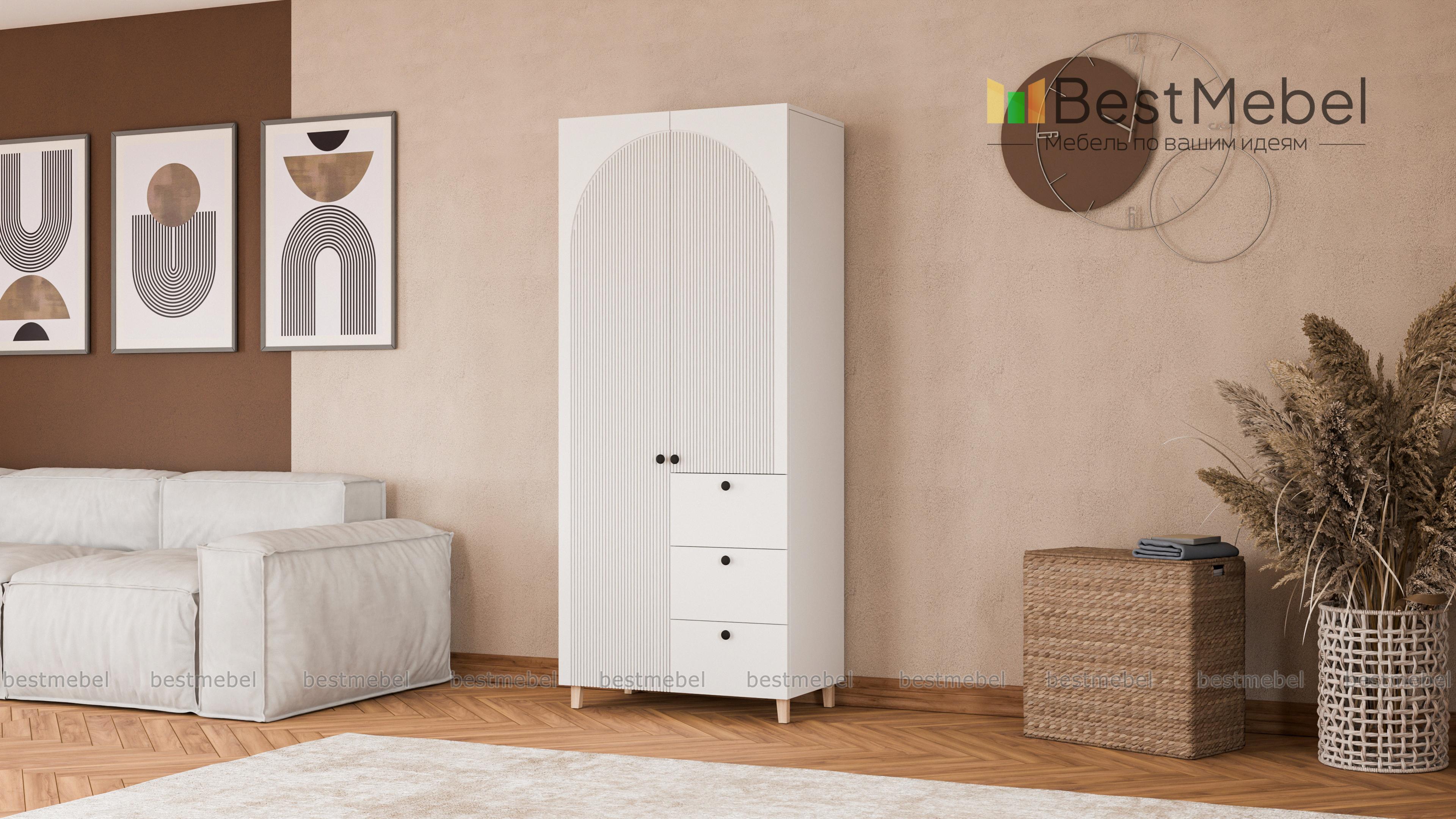 Шкаф распашной Вивьен 1 BMS — компактный, стильный и при этом функциональный. Удобно расположить базовый гардероб помогут распашные секции и ряд выдвижных ящиков, расположенных справа. В отделке шкафа с высокими ножками использованы универсальные оттенки, а роль акцента играют миниатюрные круглые ручки и оригинальный арочный рельеф на фасаде. Купить шкаф распашной Вивьен 1 BMS вы сможете на сайте нашего интернет-магазина в любом удобном размере и оттенках из каталога.