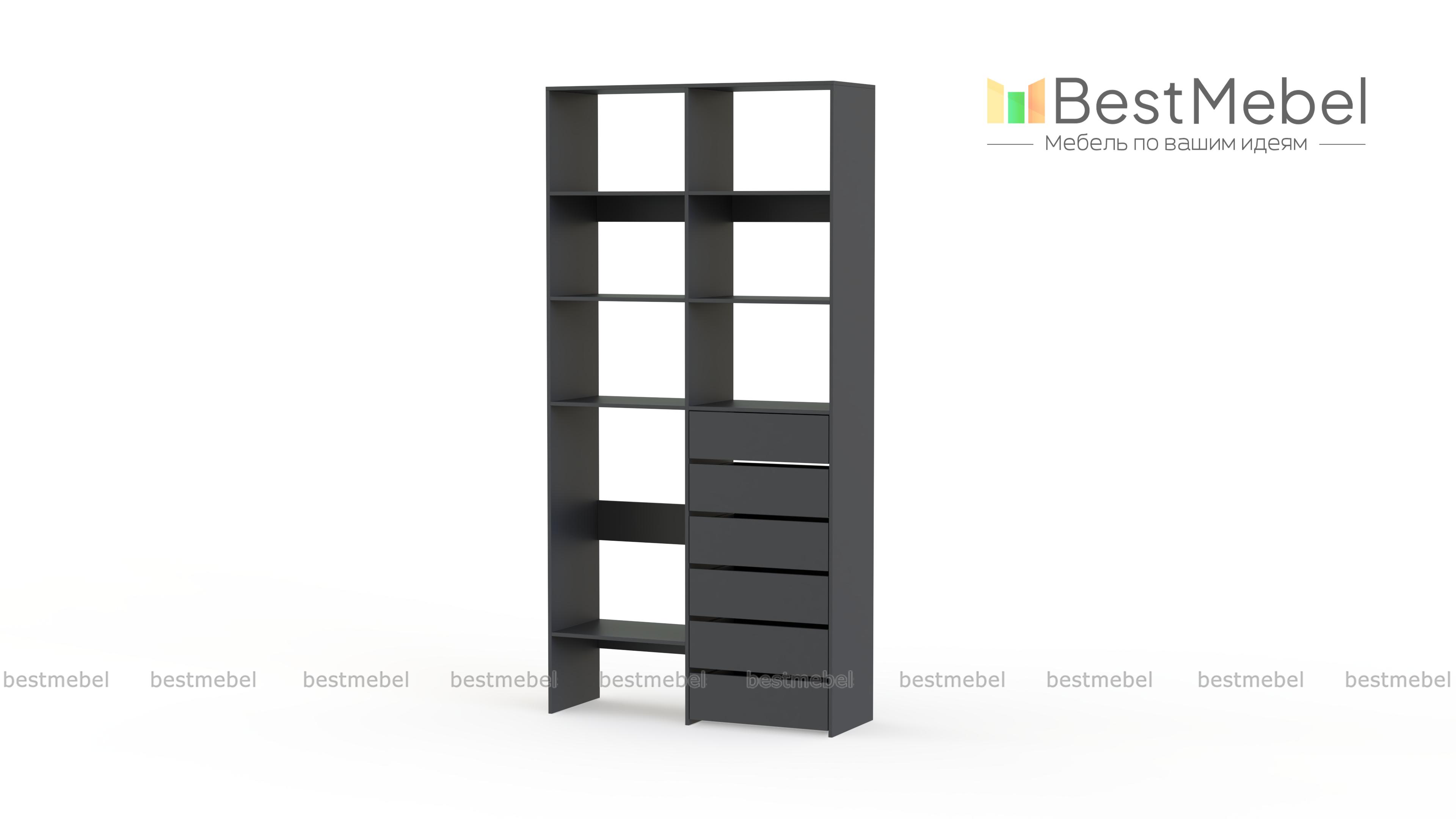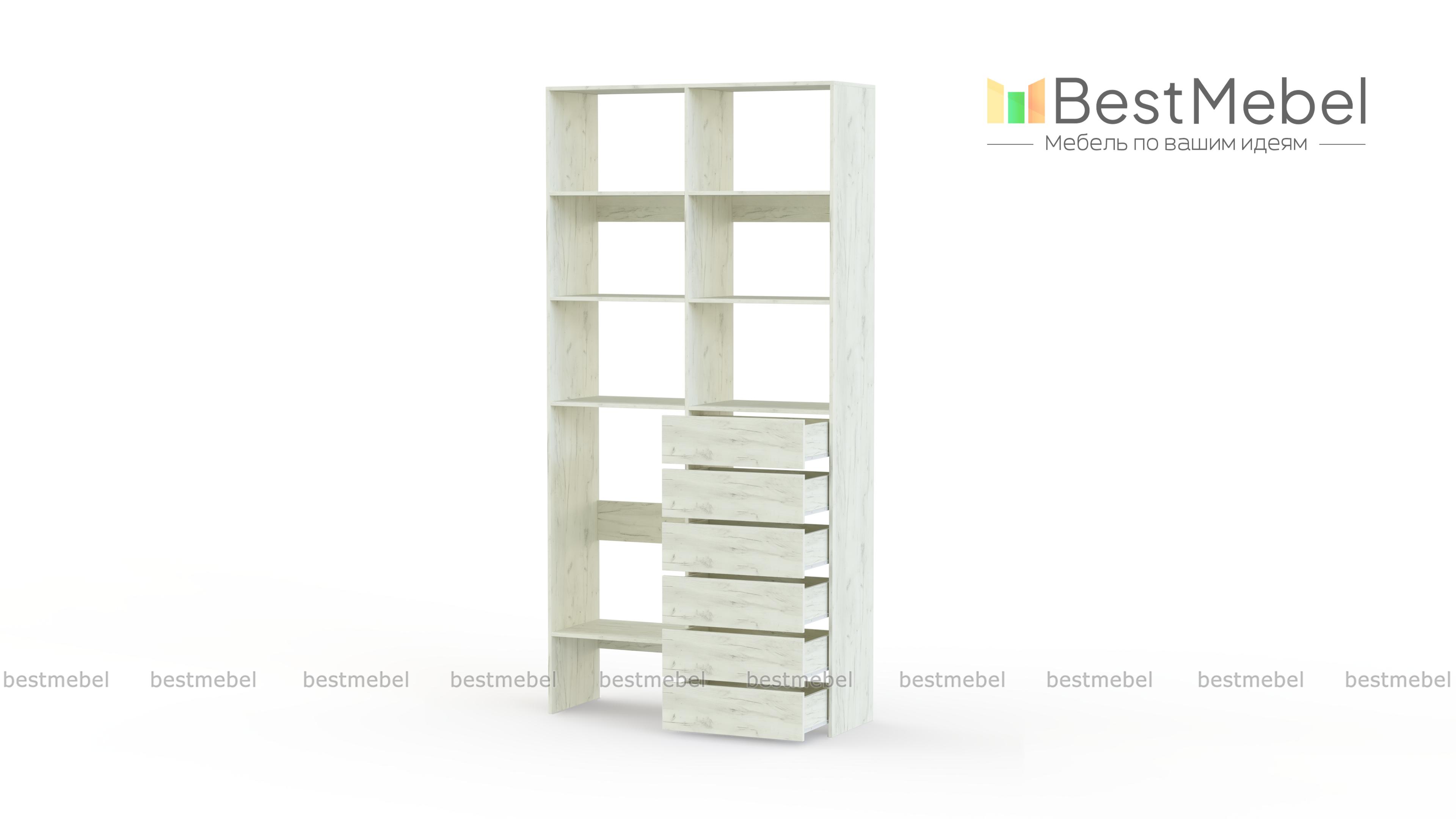 Стеллаж для одежды Мирта 39 BMS представляет собой готовое решение для вашей прихожей или гардеробной комнаты. Расположенные на разной высоте полки и целых шесть выдвижных ящиков позволят вам разместить как мелкие, так и габаритные вещи: одежду, обувные коробки и всевозможные аксессуары. Для изготовления стеллажа использован современный экологичный материал — ламинированная ДСП. Купить стеллаж для одежды Мирта 39 BMS в оттенках нашего каталога на выбор вы сможете на сайте интернет-магазина.