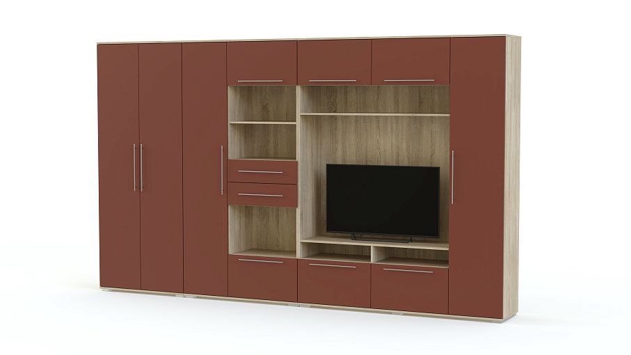 Гостиная Tomas BMS порадует поклонников ярких современных дизайнов стильным минимализмом и функциональностью. Практичная модель включает в себя все необходимое для размещения предметов гардероба, книг, аппаратуры, интерьерных украшений и множества мелочей. В комплект входят распашной шкаф, пеналы, комбинированная с выдвижными ящиками колонка, тумба под ТВ и антресольная полка. Цветные матовые фасады надолго сохранят эстетичный вид благодаря износостойкости и простоте ухода. Купить гостиную Tomas BMS вы сможете в нашем интернет-магазине по отличной цене.