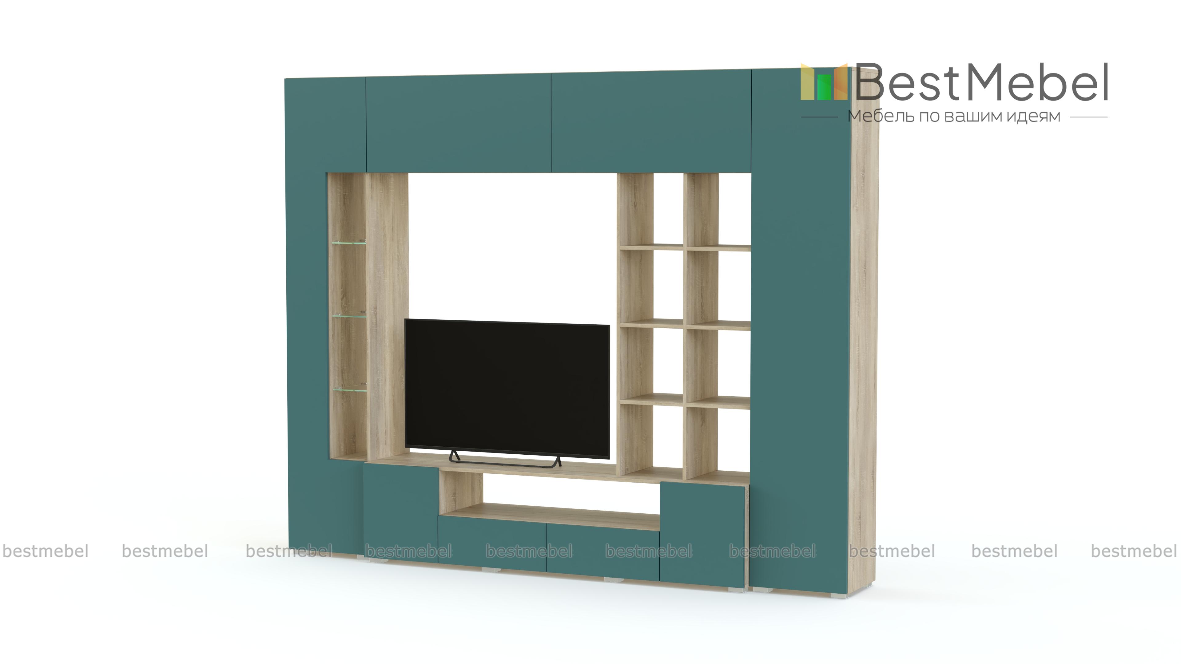 Стенка Денди № 1 BMS – яркая модель для современных гостиных в стиле минимализм и хай-тэк. Вместительный комплект состоит из отдельных модулей, образующих единую композицию. Стенка оборудована низкой напольной тумбой с нишей и распашными ящиками, застекленным пеналом, закрытым пеналом с полками и навесным шкафом с двумя секциями. Сплошные матовые фасады без ручек могут открываться легким нажатием. Купить стенку Денди № 1 BMS, подобрав необходимые параметры, вы сможете в нашем интернет-магазине.