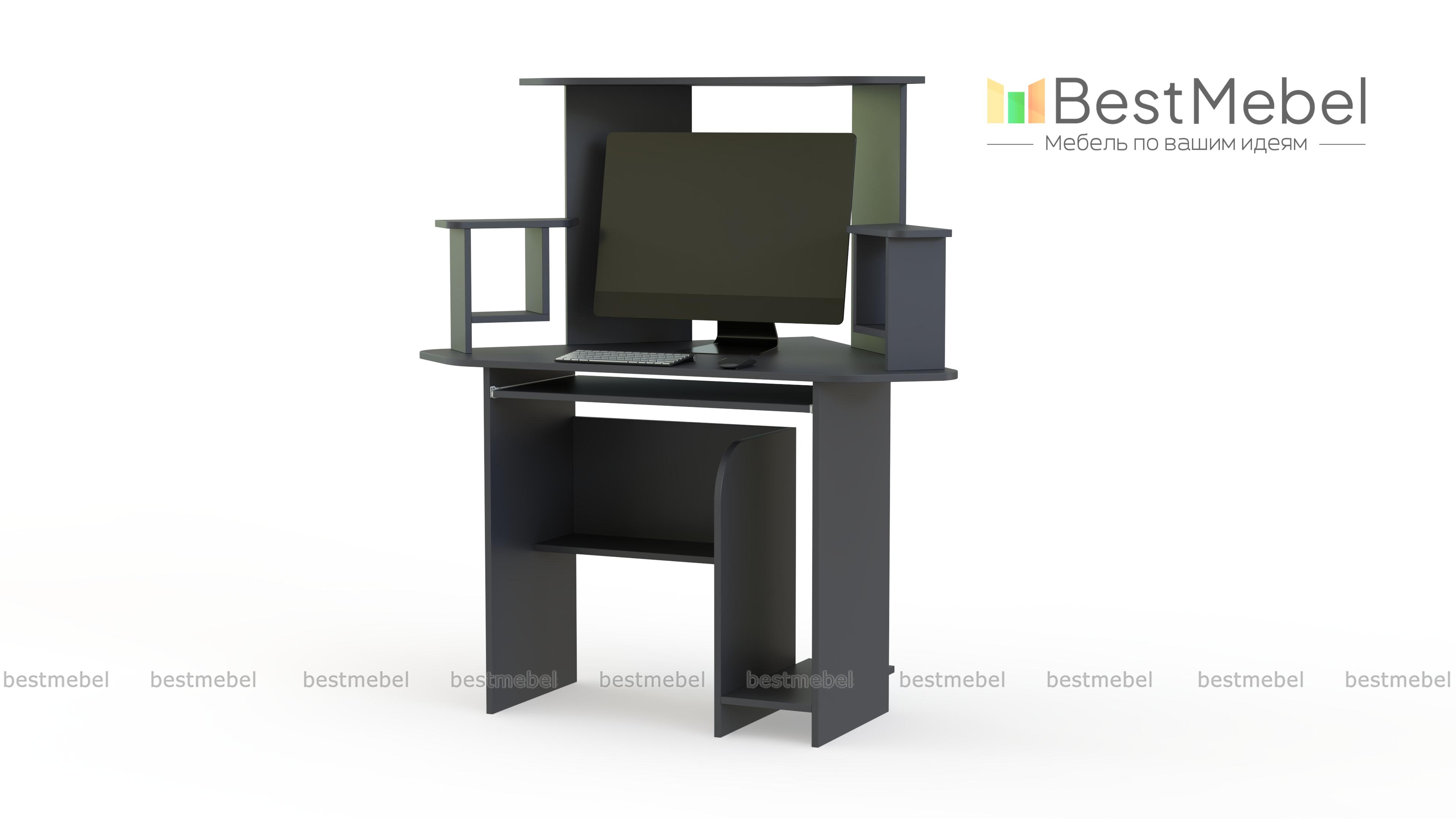 Стол компьютерный СКУ-1, выполненный в классическом стиле прекрасно подойдет для небольшой комнаты. Удобный угловой вид данной модели прекрасно впишется в Ваш кабинет и не займет много места. Наличие нескольких полок позволяет разместить диски, колонки и необходимые Вам мелочи. Очень хорошо организовано пространство под столом. Там есть полка, на которую можно положить пачку бумаги для принтера или парочку журналов. Если Вас заинтересовала данная модель, можно недорого заказать ее у нас.