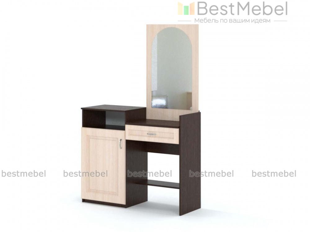 Стол туалетный Ланистер 21 BMS станет практичным дополнением современного спального гарнитура. Модель отличается компактными размерами и оригинальным дизайном. Выполненный в контрастных тонах и украшенный по фасаду фрезеровкой, столик оборудован столешницей с выдвижным ящиком для мелочей, высокой тумбой с нишей и распашным отделением и панелью со скругленным зеркалом. Купить стол туалетный Ланистер 21 BMS и разместить все необходимые уходовые средства и предметы декора вам поможет наш интернет-магазин.