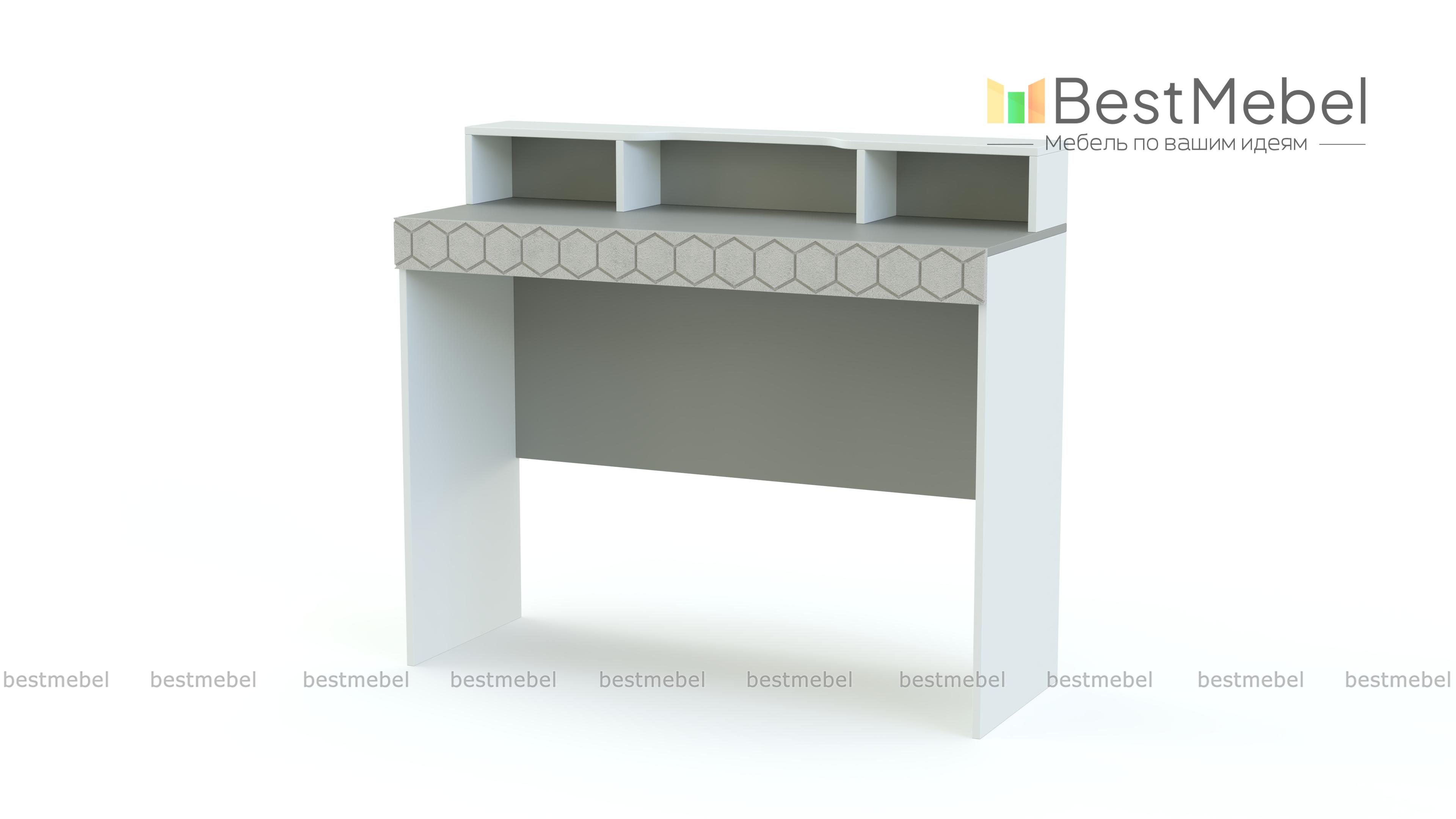 Туалетный стол Монте 5 BMS выполнен в древесных тонах теплой светлой гаммы и декорирован по фасаду накладкой с оригинальным фрезерованным орнаментом. Для удобного хранения мелочей элегантный столик оборудован широкой двухуровневой столешницей с полочкой, к которой крепится зеркало, и вместительными нишами. Износостойкость поверхностей и простота ухода помогут надолго сохранить модели эстетичный вид. Купить туалетный стол Монте 5 BMS и сделать спальный интерьер функциональнее вам поможет наш интернет-магазин.
