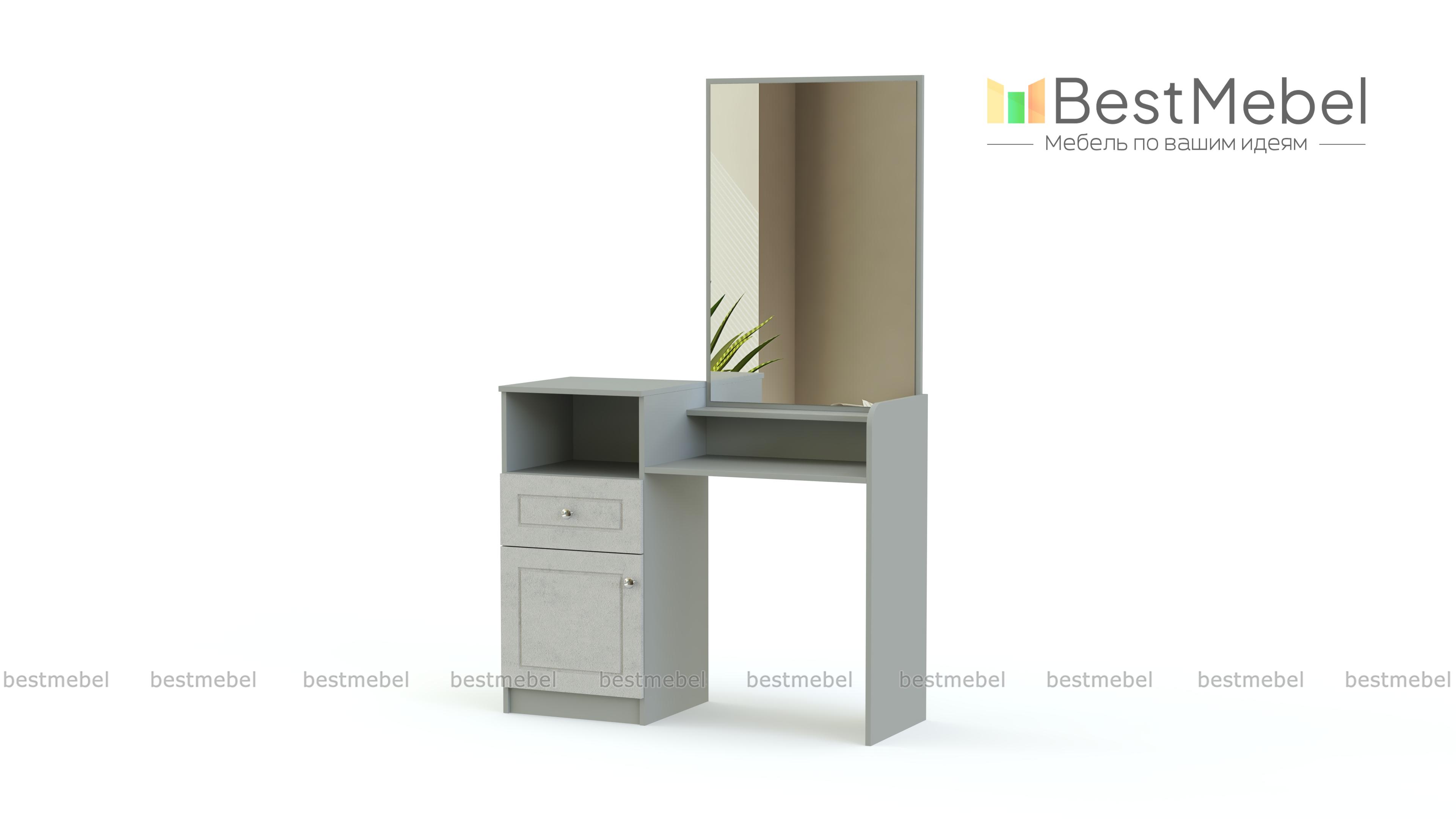 Очень симпатичная модель, которая добавит нотку уюта в Вашей спальне. Туалетный стол Венеция СБ-1298 BMS изготовлен в универсальном современном стиле. Имеет большое зеркало с двумя полочками под ним. Слева находится высокая тумба с открытой нишей, выдвижным ящичком и отделением с полочкой. В ней Вы с удобством расположите всю свою косметику и средства гигиены. У нас Вы можете заказать туалетный стол Венеция СБ-1298 BMS другого цвета. Также при заказе у Вас есть возможность изменить базовые размеры модели на необходимые Вам.