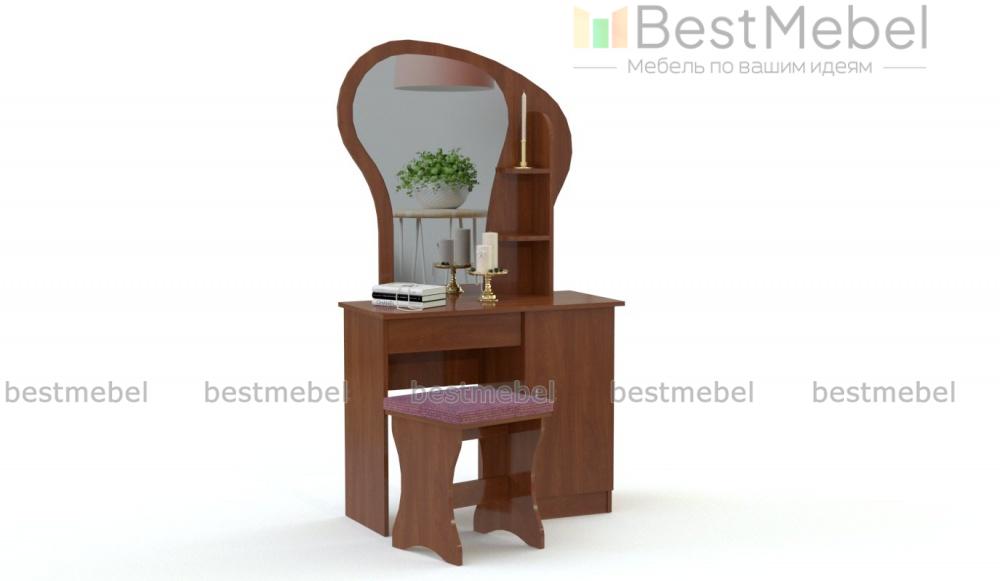 Туалетный столик Светлана 34 BMS гармонично дополнит другие предметы спального гарнитура. Для удобного хранения средств по уходу и аксессуаров стол оборудован распашной тумбой и открытыми боковыми полочками, а необычный вид модели придает обтекаемой формы зеркало на фигурной панели. С комфортом расположиться за столиком позволит выполненная в едином стиле банкетка с мягким сиденьем. Купить туалетный столик Светлана 34 BMS приглашаем недорого в наш интернет-магазин.