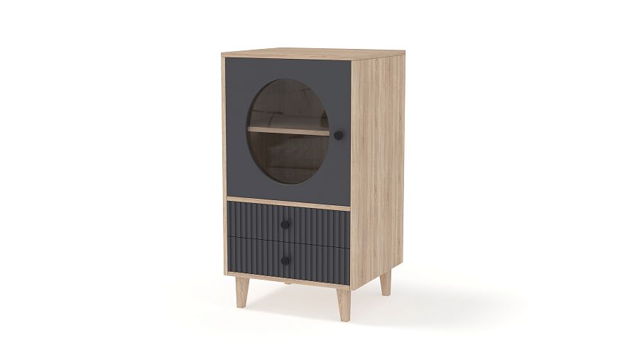 Тумба Брукс 1 BMS имеет компактные размеры и выразительный современный дизайн, привлекающий внимание. Для хранения и демонстрации ваших вещей прекрасно подходит витринное отделение с полкой и большим круглым вырезом, дополненное парой ящиков, украшенных фрезеровкой. Легкий силуэт тумбы создают высокие ножки древесного оттенка в тон корпусу. Купить тумбу Брукс 1 BMS с возможностью выбора цвета и габаритов приглашаем на сайт нашего интернет-магазина.