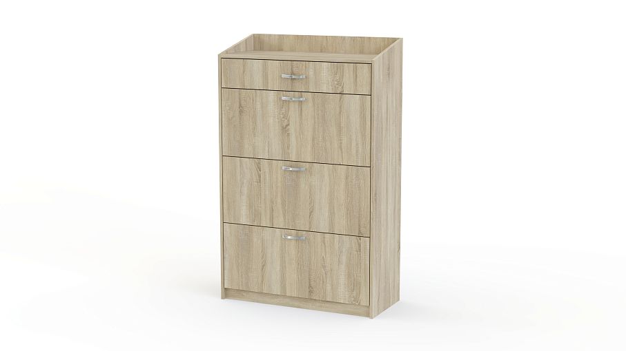 Тумба для обуви Джеки 3.1 BMS легко впишется в большинство современных интерьеров, отличаясь простым и функциональным современным дизайном. Закрытая высокая модель, оборудованная тремя откидными лотками, ящиком для мелочей и столешницей с защитными бортиками, позволит вам компактно разместить обувь всех членов семьи и средства ухода. Выполненная в натуральных оттенках под массив дерева, тумба оснащена удобными ручками-скобами. Купить тумбу для обуви Джеки 3.1 BMS и сэкономить полезную площадь вам поможет наш интернет-магазин.