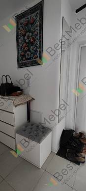 Номер заказа 00000691648 тумба оказалась очень удобной. По моей просьбе её сделали немножко уже, чем было заявлено в стандартных размерах абсолютно бесплатно. Тумба очень надёжная, намного удобнее, чем узкие тумбы. В эту тумбу нормально влезает обувь 43 размера. Ну единственное, что на велюр очень хорошо прилипает кошачья шерсть. Но к когтям устойчиво.