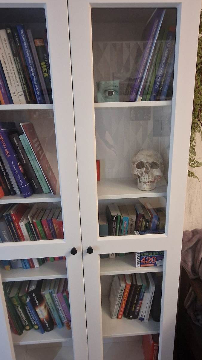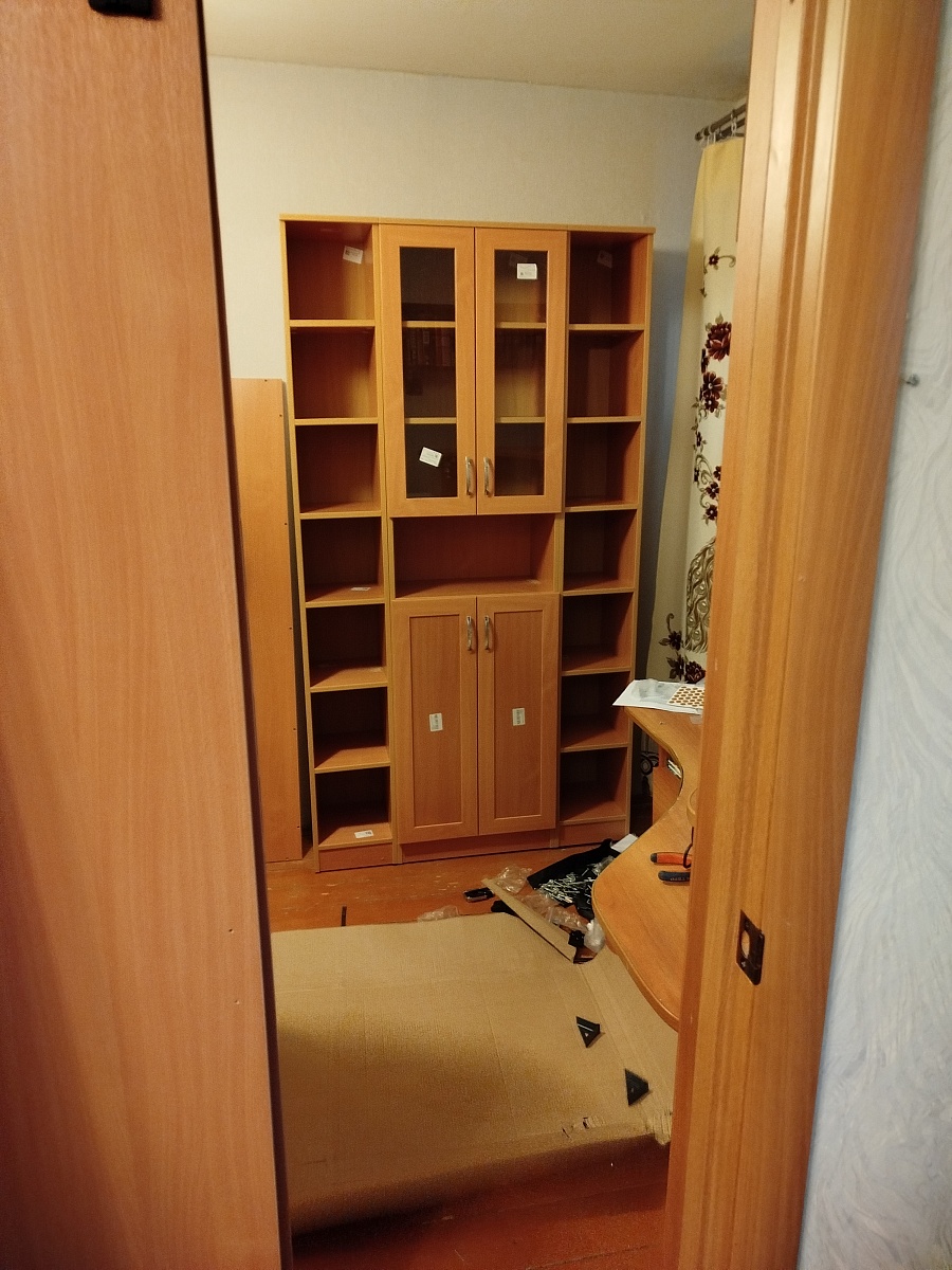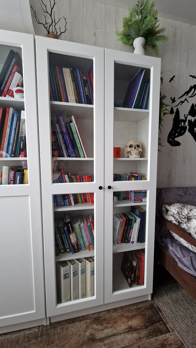 Шкаф в выбранном цвете смотрится шикарно. Из-за того, что книги очень высокие, пришлось менять высоту полок (что-то заранее сделали, что-то на месте). Понравилось, что можно менять конструкцию и даже что-то вне указанного (та же высота полок).