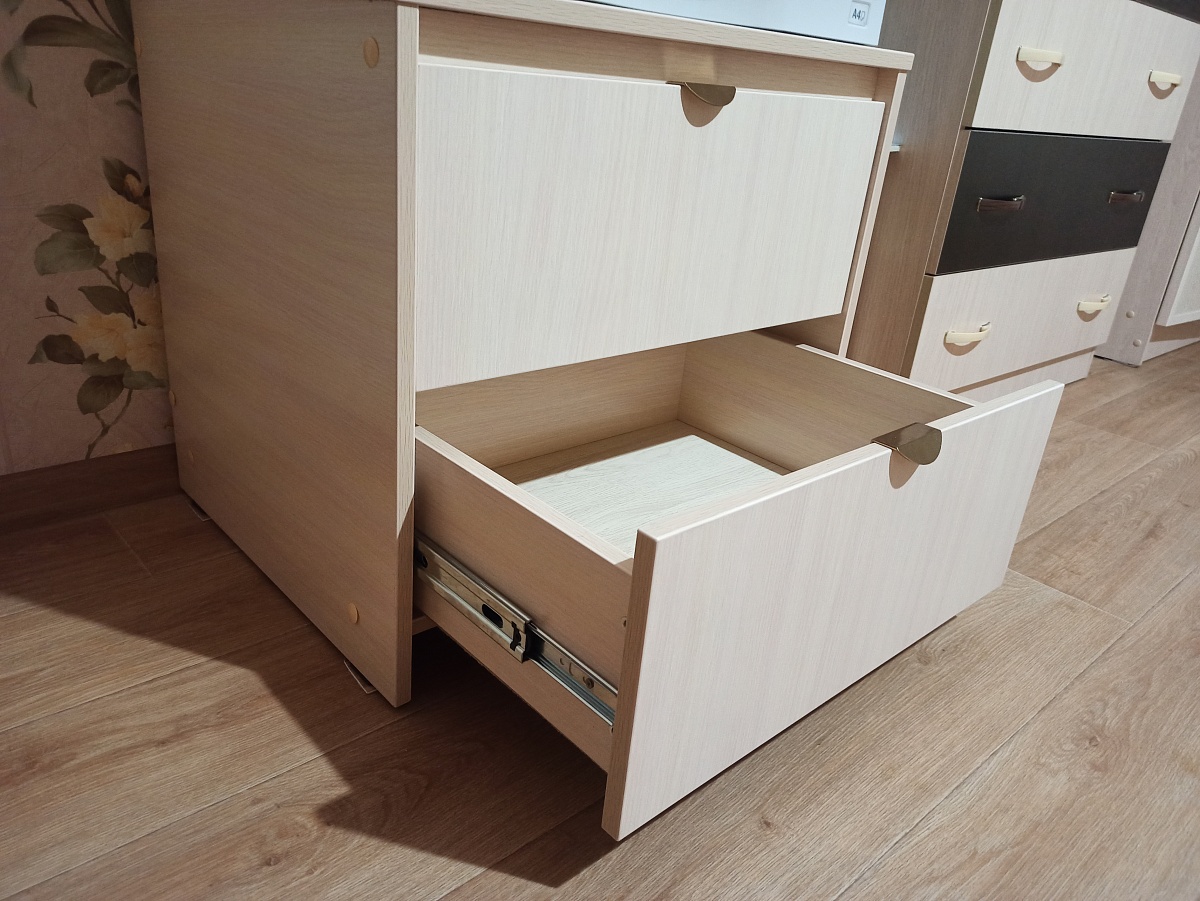 Делаю заказ уже не первый раз. Тумба мне понравилась дизайном и она подходила мне для того, чтобы разместить на ней копировальный аппарат. Мне нравится делать заказ в данной организации, потому что можно выбрать размер, который необходим мне, цвет, фарнитуру, кромку и т.д. Вот и с тумбой получилось. Из-за того, что я сделал заказ большого размера, то мне позвонили и предложили сделать вместо одного ящика, два. Так один бы был очень громоздким и тяжёлым, при этом стоимость увеличилась только на стоимость направляющих. Так что, у них правильный подход к изготовлению. Доставка тоже удобная. Звонят заранее и можно договориться о времени. Для сборки изделия есть подробная инструкция. Так что, собирал самостоятельно, без проблем. Рекомендую заказывать у них мебель. Отзыв оставляю с чистым сердцем и правдивый!