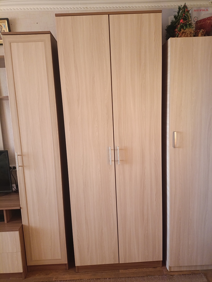 Заказ 00000280183, 00000280184. Заказал без проблем, магазин отзвонился, девушка предупредила о неустойчивости шкафа такой глубины. Но я знал. что мне нужно.  Шкафы приехали вовремя. Проблем со сборкой особо не было. Но почему-то положили двойной комплект винтов для ручек. И, что странно, это соответствовало ведомости. Шкафы прикрепил к стене. Внутри установил полки. Сверху установил антресоли. Почему не заказал высокие шкафы с полками? Да потому что цена в три раза возрастает. В общем, теперь в коридоре есть место для хранения всякой хоббийной мелочи и хоз. инвентаря.