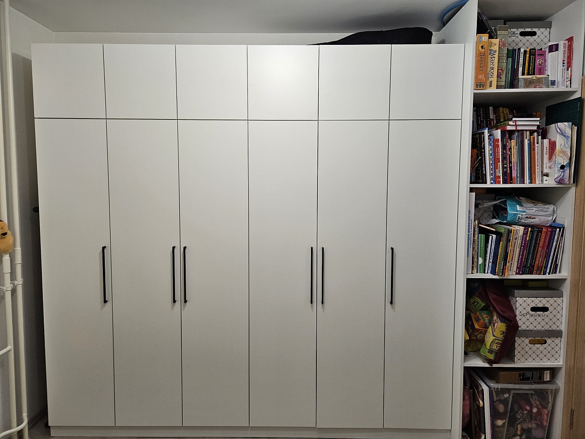 Это потрясающе, заказали в четверг. Привезли в субботу!Цена дешевле маркетплейса, сделали супербыстро и по нашим размерам.Качество норм, покупкой довольны, но то что сделали в размер за два дня - это вообще невероятно!Что можно сделать лучше - инструкцию, пожалуйста поправьте распечатку с расположением, качество настолько плохое, что не видно цифр номера материала, но спасибо что все элементы простикерованы.И еще - кто будет заказывать под потолок, заранее учитывайте как будете поднимать/устанавливать шкаф, мы ошиблись и порвали потолок )))Но еще раз, компании огромное спасибо! С наступающим!