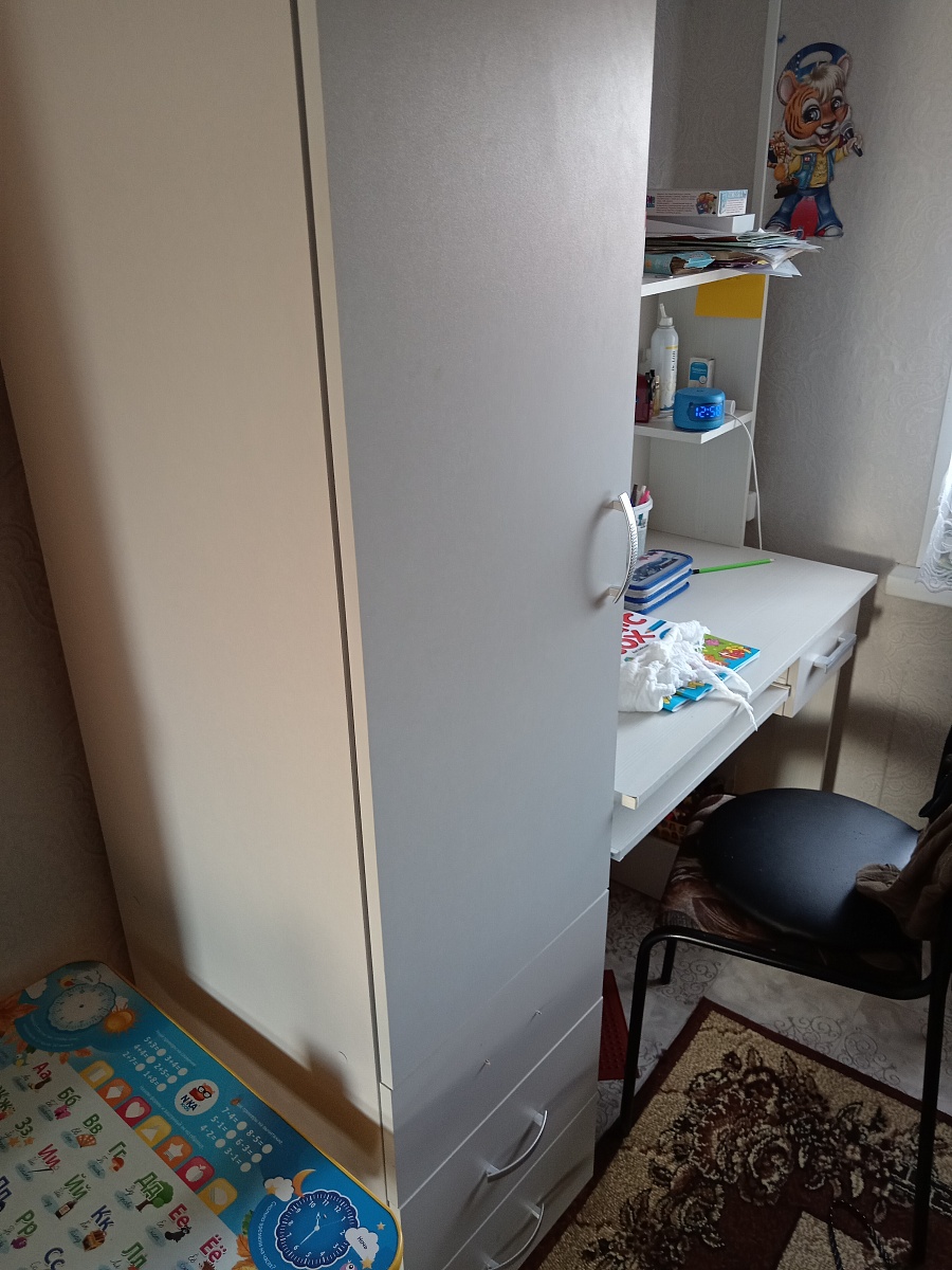 Заказывала ребёнку в комнату. Очень удобно, что можно подогнать размеры под своё помещение. Получилось сделать от стены до стены, как и хотели. Стенка и стол встали идеально! Цвет тоже отлично вписался в интерьер. Ребёнок доволен)Заказы и изделия:Заказ 00000766510, изделие ЭСКИЗ №00000766510 Стенка Ириска 7 Заказ 00000766511, изделие ЭСКИЗ №00000766511 Стол угловой Мармара 1