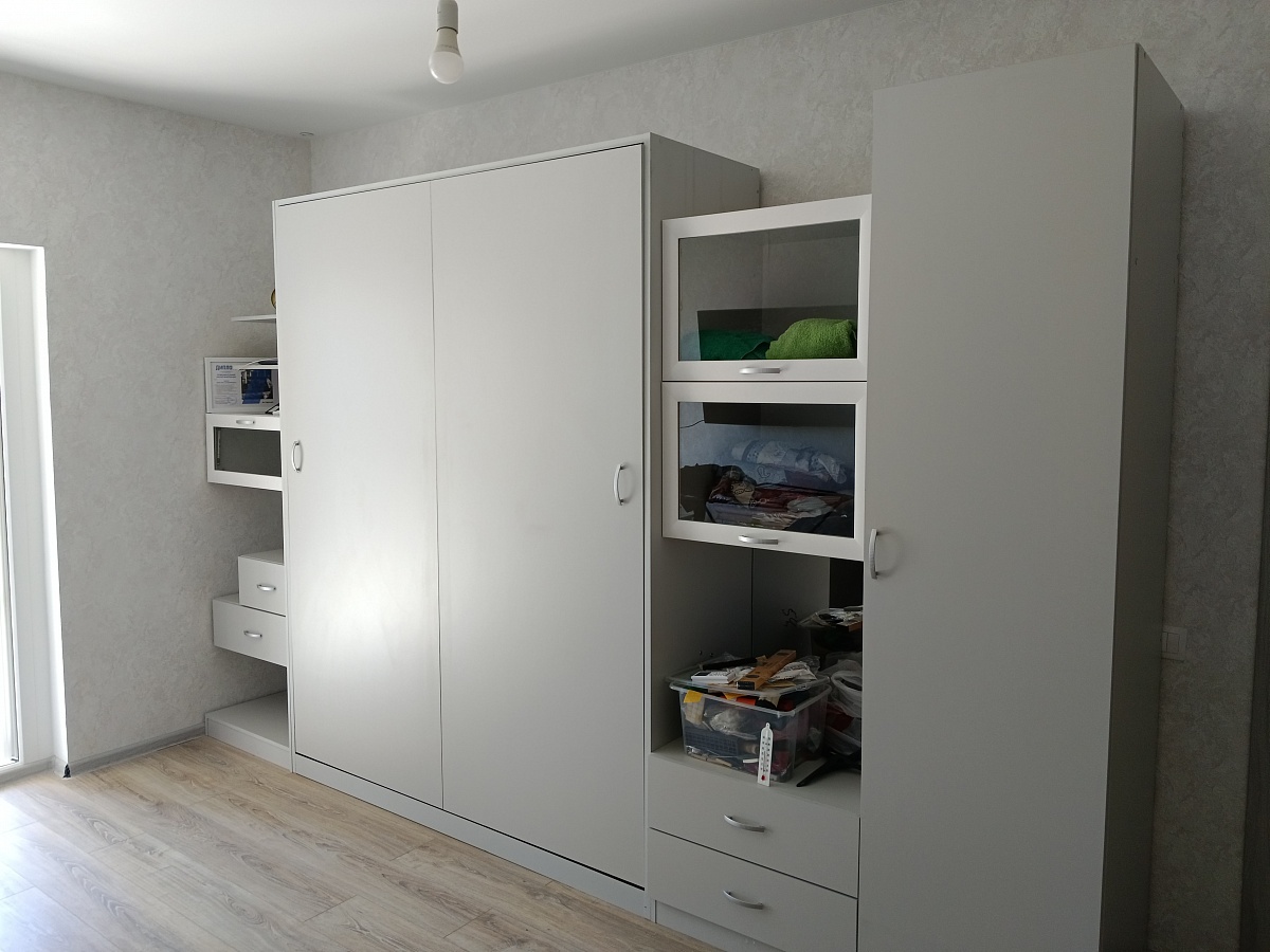Заказ  00000725047   Прекрасная антресоль. Цвет и размер подобрала по своим параметрам. Заказом довольна. Быстро привезли, быстро собрали.