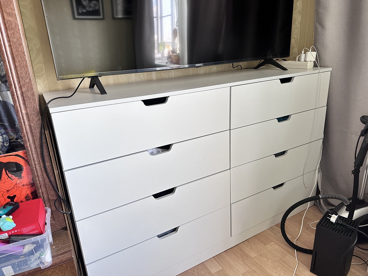 Заказ 00000721213, изделие Комод Нордли Nordli 12 (1600х990х470). Хороший комод. Вместительный, стильный, отлично вписывается в интерьер нашей спальни. Покупкой довольны. Доставка была быстрой, водитель несколько раз связывался. Собирали сами.