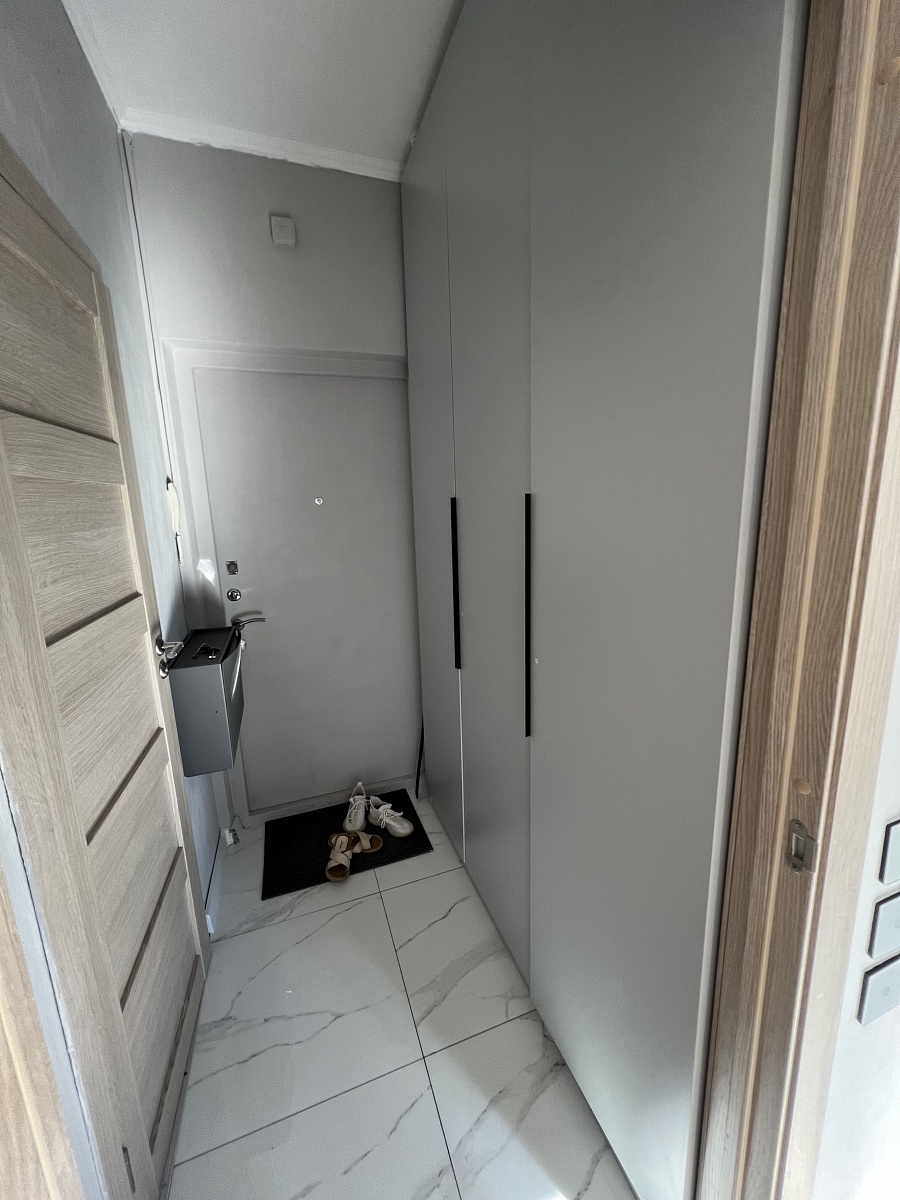 Цвет смотрится стильно и дорого. Полностью все меняла под себя в конструкторе. Наши размеры: высота 2,7м. Глубина всего 30 см, ширина 160. Для таких параметров цена-подарок. Ручки заменила на современные. Получился клевый шкаф в потолок за 42 тыс