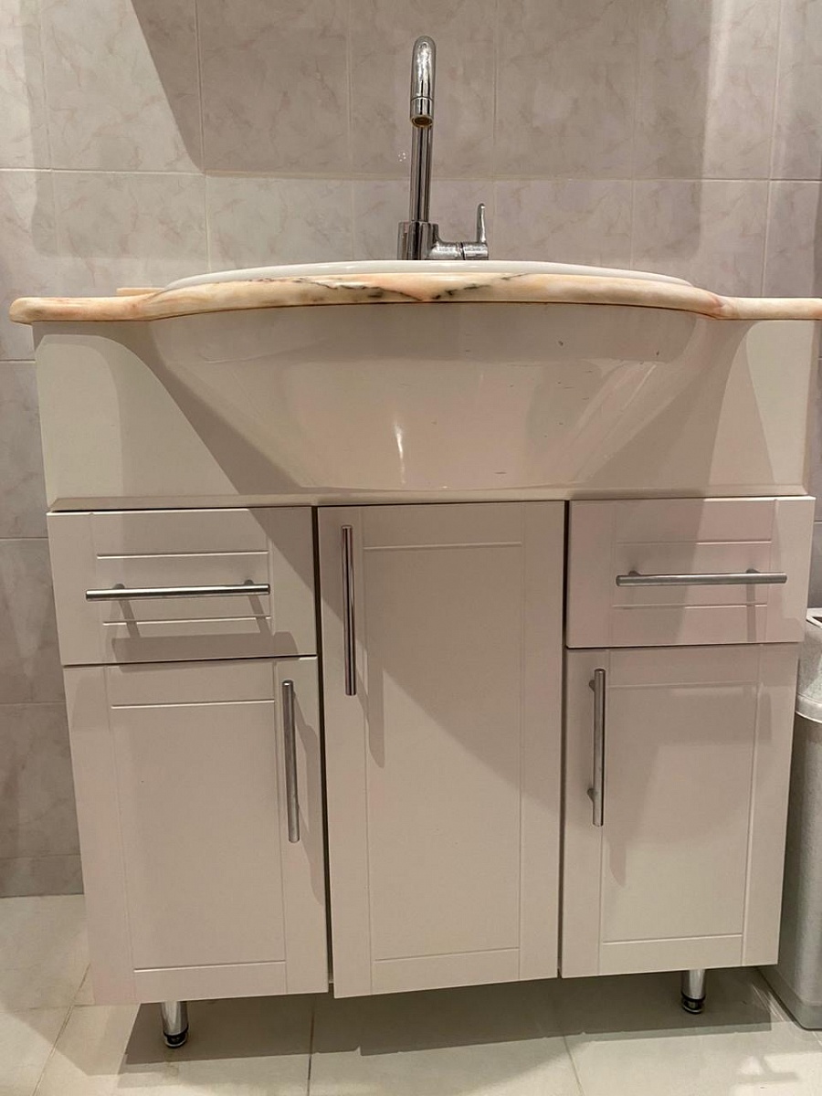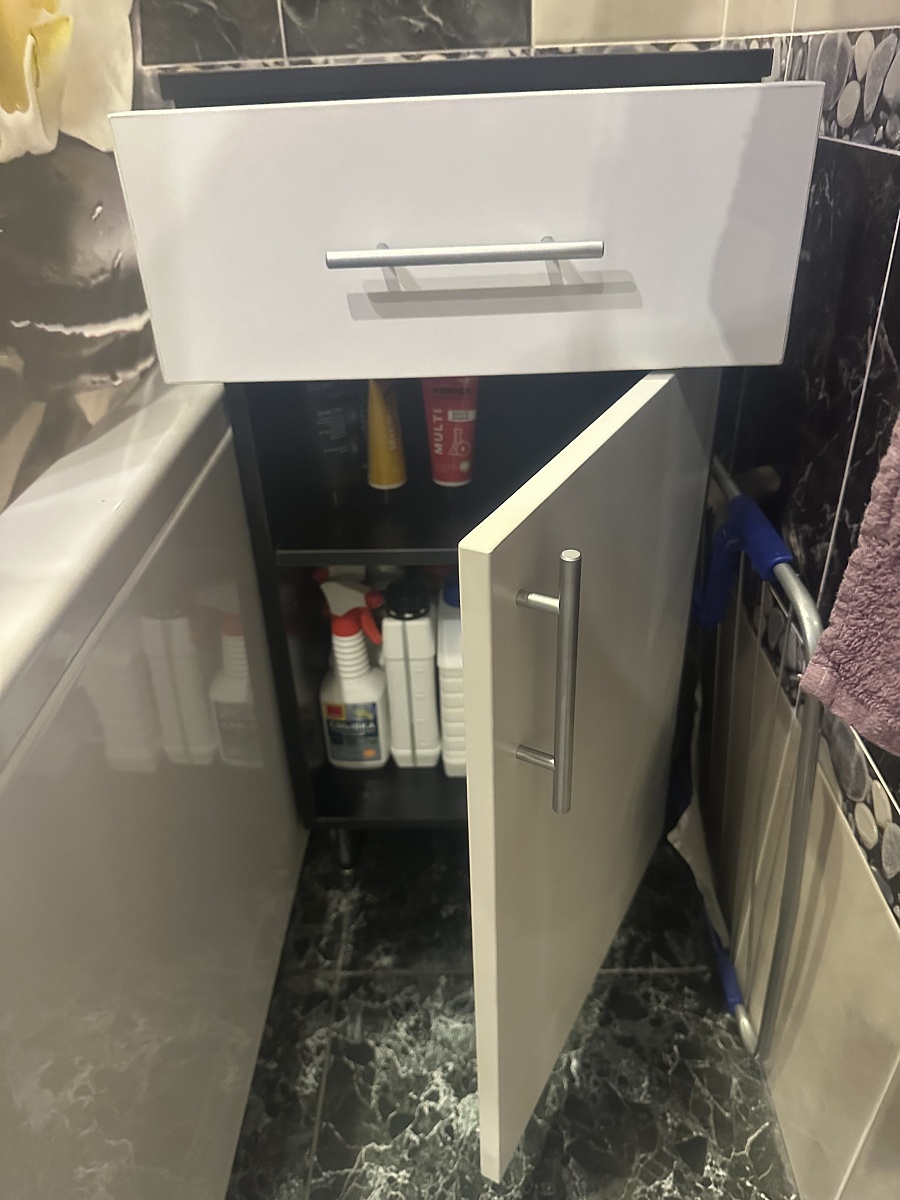 Тумба шикарная, мне очень нравится, идеально подошла по размеру, плюс сделали выпил под сифон и трубы, очень долго искала тумбу в ванную и в итоге рада, что остановилась на этой.
