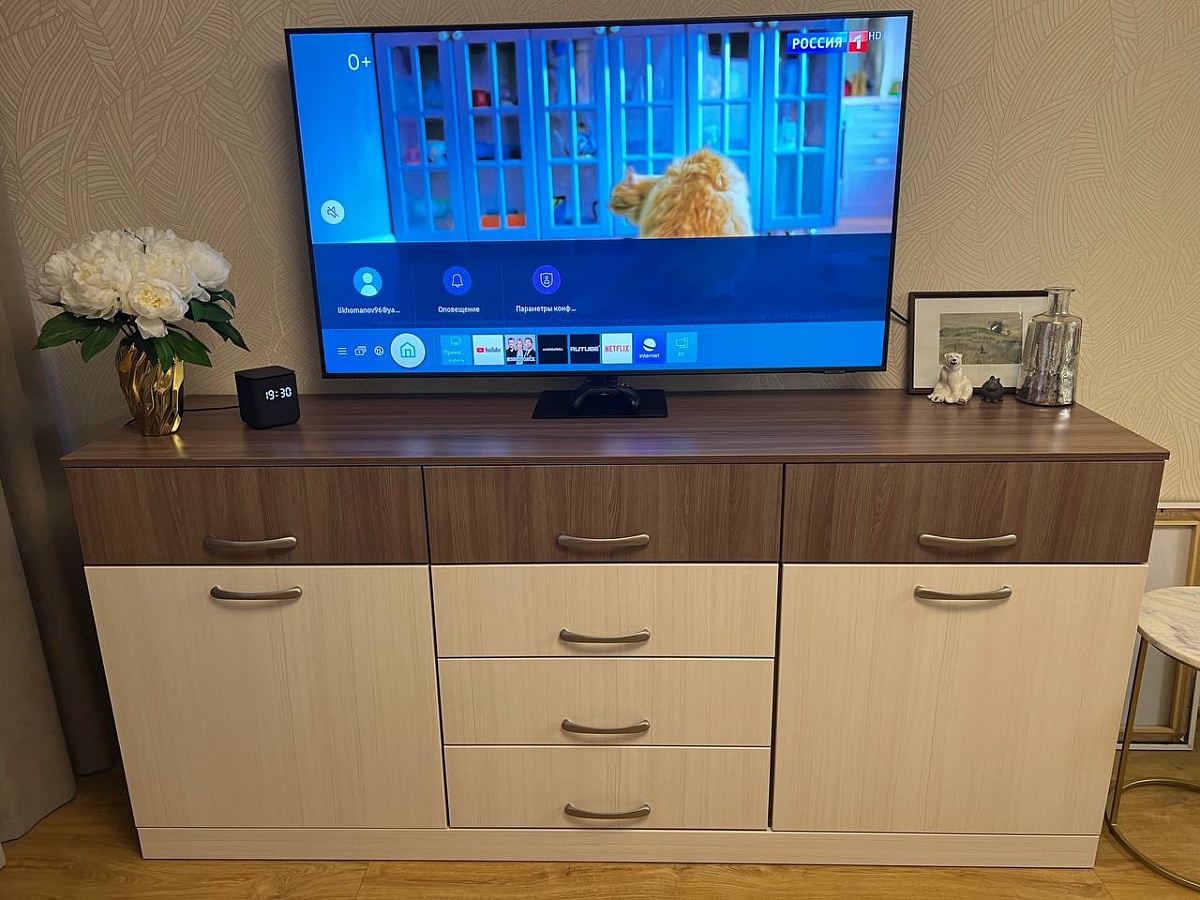 Заказывал данный комод в гостиную зону. Нужен был длинный комод с ящиками и закрытыми полками. После небольшой корректировки размеров он идеально вписался по размерам. Правда сборщик неправильно прикрутил 1 ручку.