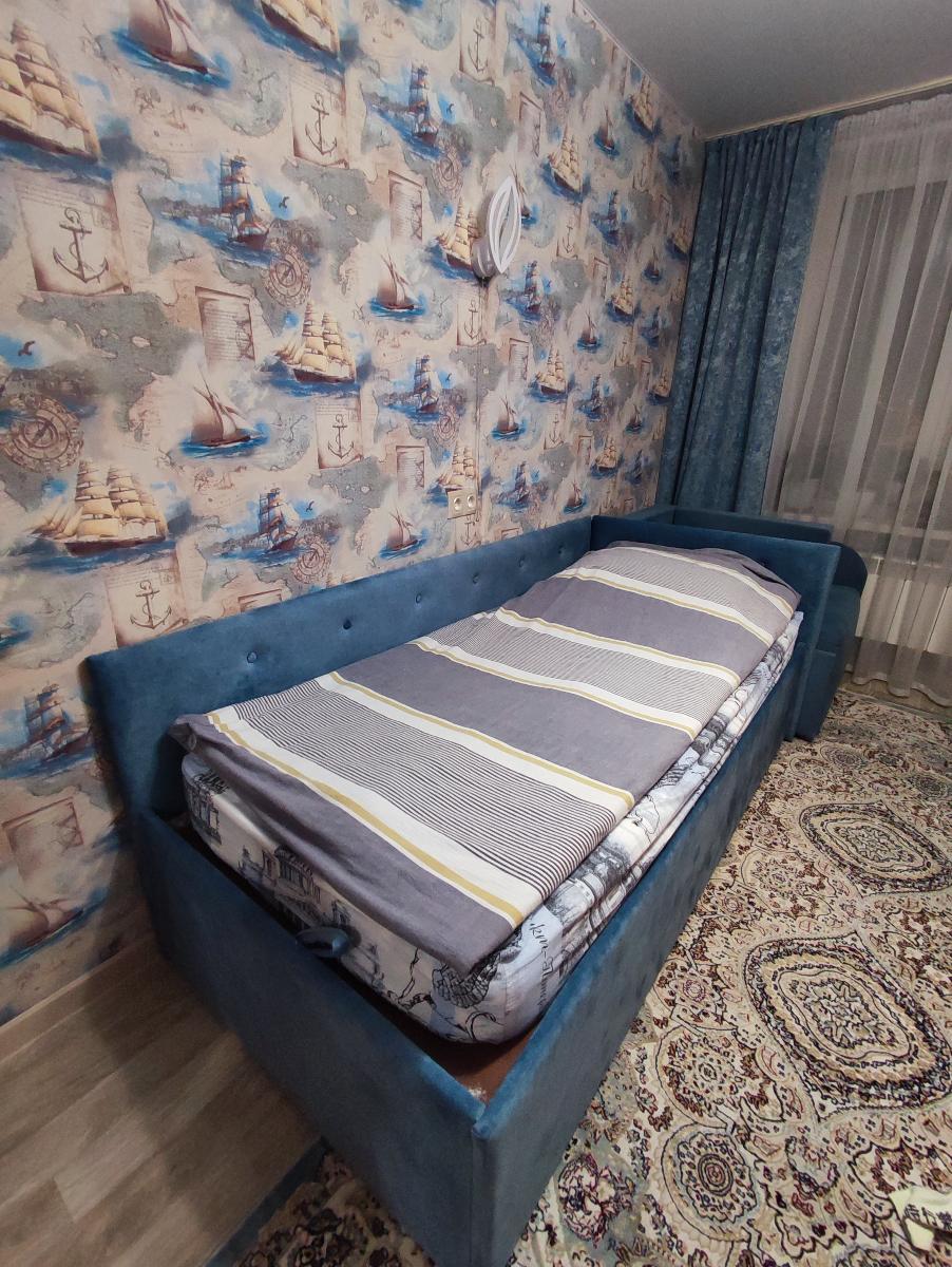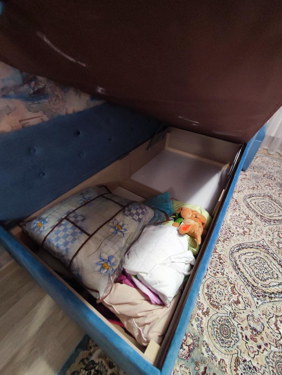 Купили сыну кровать "София", она гармонично вписалась в интерьер. Сделана качественно, ткань подобран под цвет комнаты (в магазине большой ассортимент ткани). Очень большой ящик для белья с подъемным механизмом. Доставили почти собранную, осталось только стенки приделать.К покупке рекомендую.Заказ 00000610621