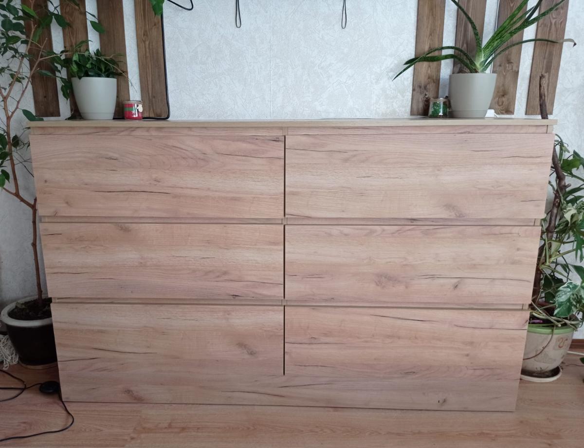 Заказывала Комод Мальм Malm 3( номер заказа №00000587518) в цвете золотой дуб крафт по индивидуальным размерам. Заказ выполнили быстро и качественно. Доставили быстро. Сборку лучше доверить сборщику, так как самостоятельно собрать сложно. Комод красивый, вместительный, крепкий.