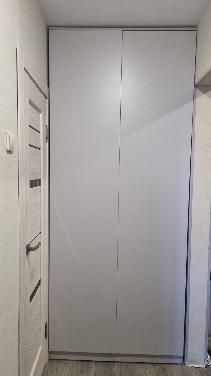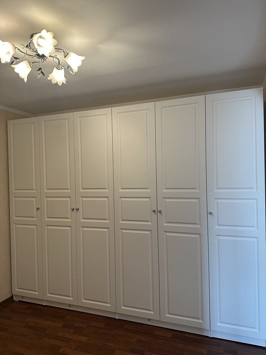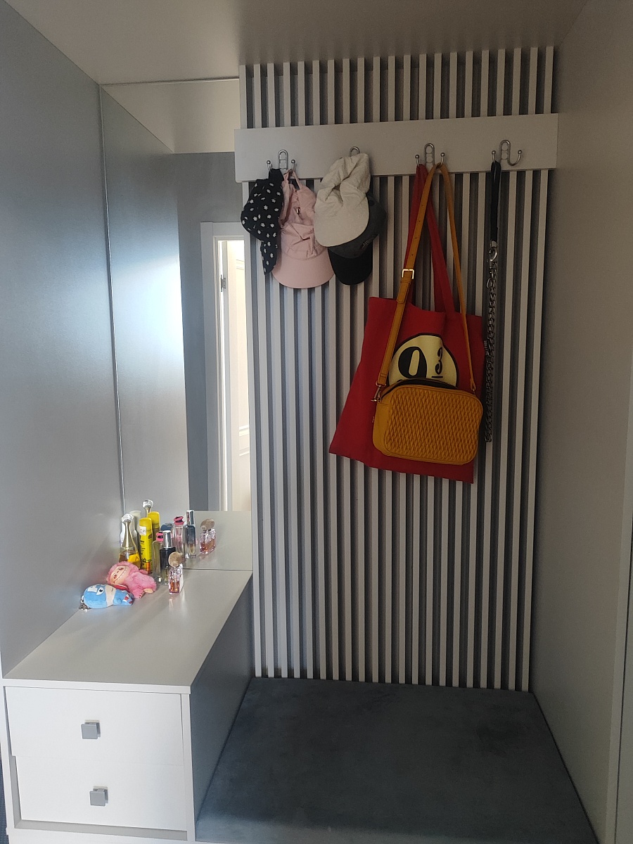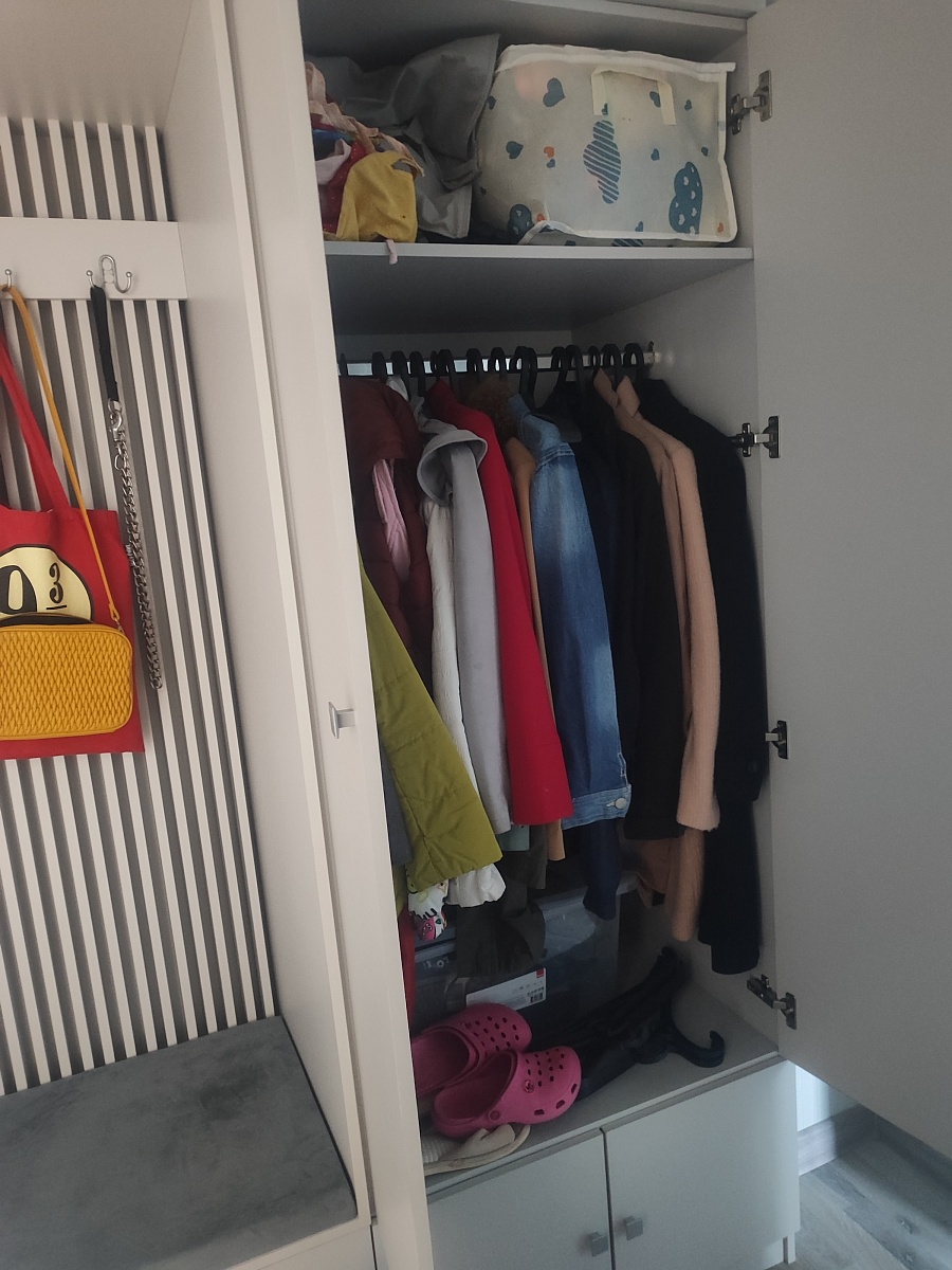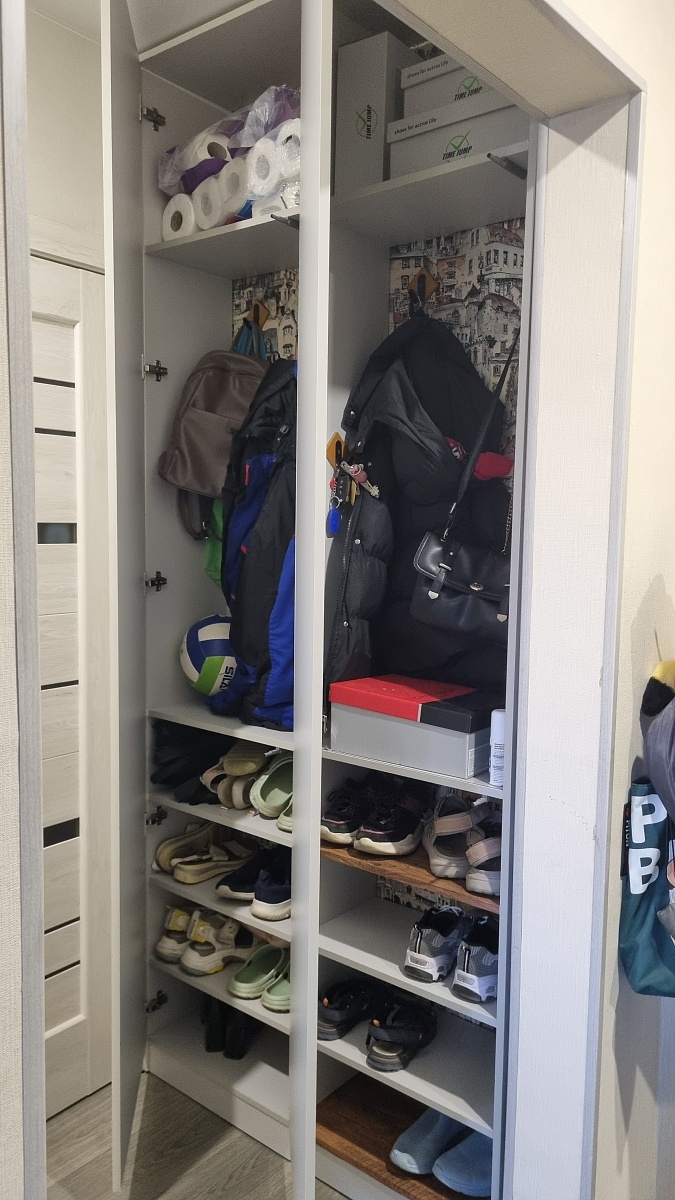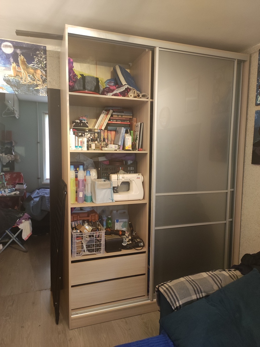 Шкаф порадовал, смотрится солидно. Есть возможность по своему усмотрению изменить конфигурацию: добавили зеркало и дополнительные полки, изменили ручки, изменили размеры. Думали будут проблемы из-за сборки в стеснённых условиях, но мастер за 3 часа все собрал на отлично. Заказ 00000133736