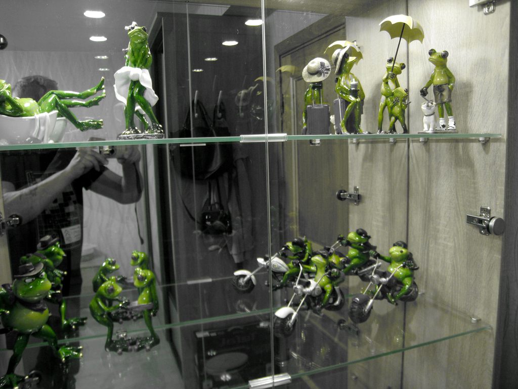 Заказ 00000989846, торговый стеллаж Кассиопея 2 BMS.Жене домой нужен был удобный вместительный стеллаж (витрина) со стеклами и зеркалом для собирающейся коллекции лягух и клованов.Выбрал этот, в моих размерах 2000х900х280, без замков.В итоге собственной сборки получилось то, что надо. Но, увы, не без танцев с бубном.Стеллаж очень тяжелый (зеркало + задняя стенка мебельный щит).Стекла, особенно тонкие дверцы с отверстиями под петли, приехали целыми. А на них даже дышать страшно...Стеклянные дверцы устанавливаются, как вкладные, снизу получается щель где-то 2 см, если не часто, то открывать удобно, и стекла не пачкаются.Подрезано всё отлично, никаких проблем.Освещения, идущего в комплекте, вполне достаточно.Минусы:На некоторых панелях кромка может выступать за геометрию на 1 - 1, 5 мм, приходится подрезать.Петель на нижние дверцы в наборе не оказалось, только 4 ответки. Поставил свои.Для петель на стеклянные дверцы стекло 3мм слишком тонкое, пришлось купить резиновые кольца (из автонабора колец, по 3р.), и взять более длинные саморезы для затяжки петли на стекле.Докупил А-образный силиконовый профиль (можно разрезанную трубку)  на торцы полок, иначе дверцы просто побьются.Зеркало испачкано чем-то белесым, что даже растворителем не оттирается до конца.В комплекте черный провод 220v... И что им делать? Ни одной выборки под провод, чтобы как-то незаметно опустить его хотя бы в нижнее отделение стеллажа, в конструкции не предусмотрено. Подсверлил, поставил тонкий прозрачный, врезал удобный микровыключатель.В целом всё устроило, но повозиться пришлось изрядно.