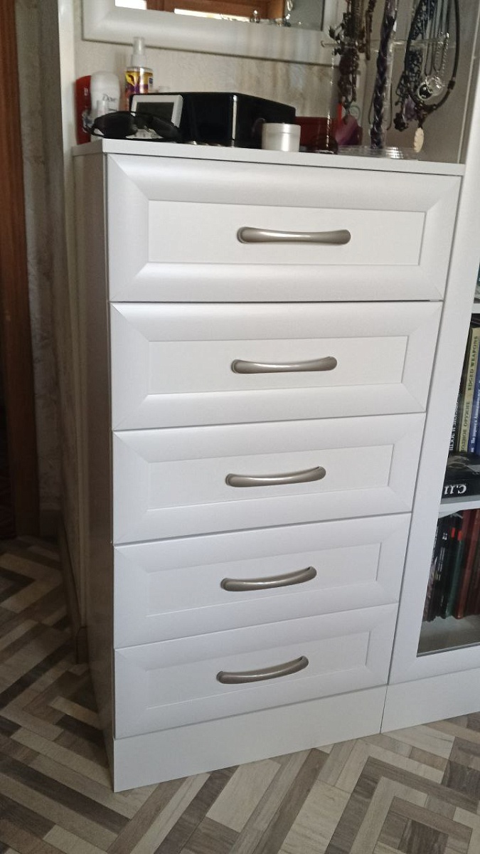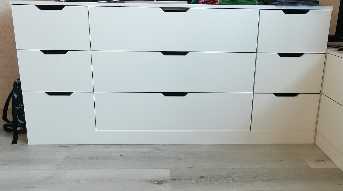 Заказ 00000972134 Комод Нордли Nordli 1. Очень удобно, что можно заказать по нужным тебе параметрам: цвет, размеры изделия, фурнитура. Затем позвонил менеджер, обсудили все детали. Были даны, как я считаю, нужные рекомендации по направляющим. Доставили быстро. Всё хорошо упаковано. Собирали сами. Инструкция по сборке сделана не очень удобно: одно большое готовое изделие с пронумероваными деталями (на самих деталях  цифры наклеены👍), если бы было пошагово - было бы🔥.  По качеству сделано добротно. Конструкция тоже продумана хорошо, не хлябает, не шатается. Ящики большие, вместительные. Вообщем всё понравилось. Фирму рекомендую.