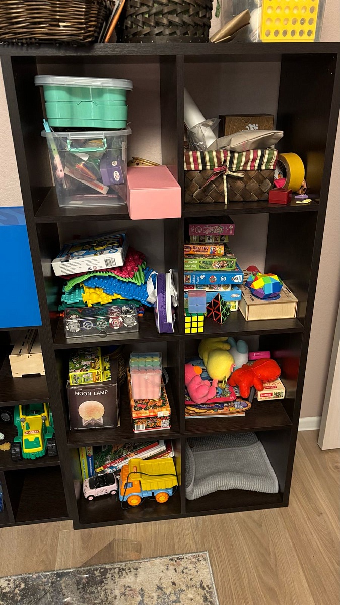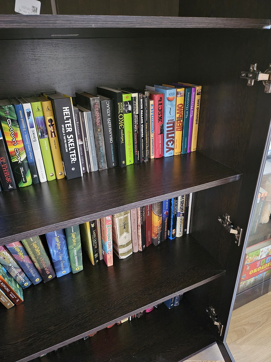 Очень хороший стеллаж! Идеально подошёл к месту. Цвет и размер как и заказывали, пришел в полной комплектации. Очень удобен для хранения книг и других вещей!