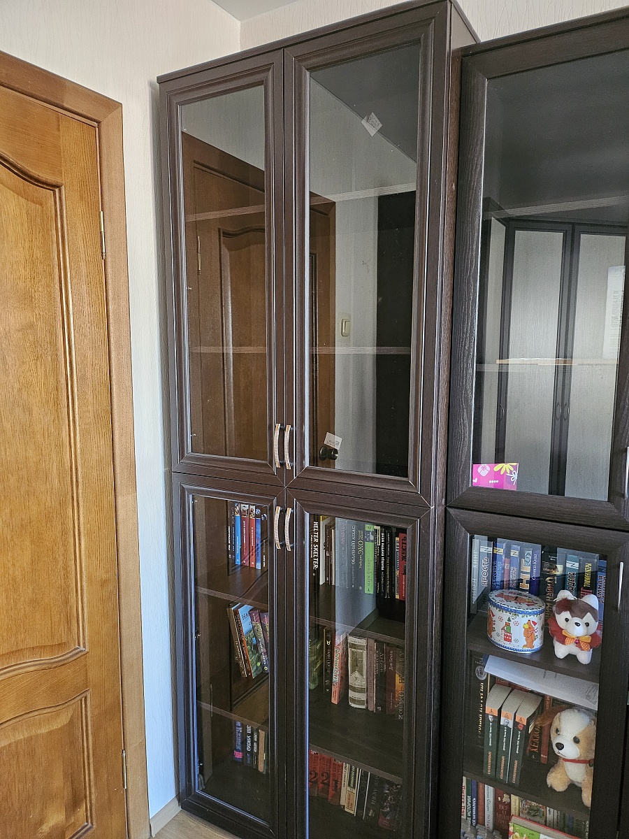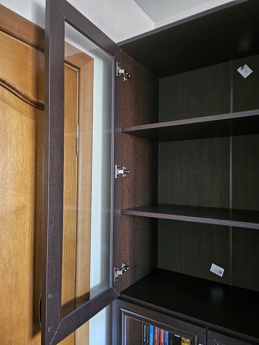 Хороший книжный шкаф. Приятный в эксплуатации. Книги можно поставить в два ряда.